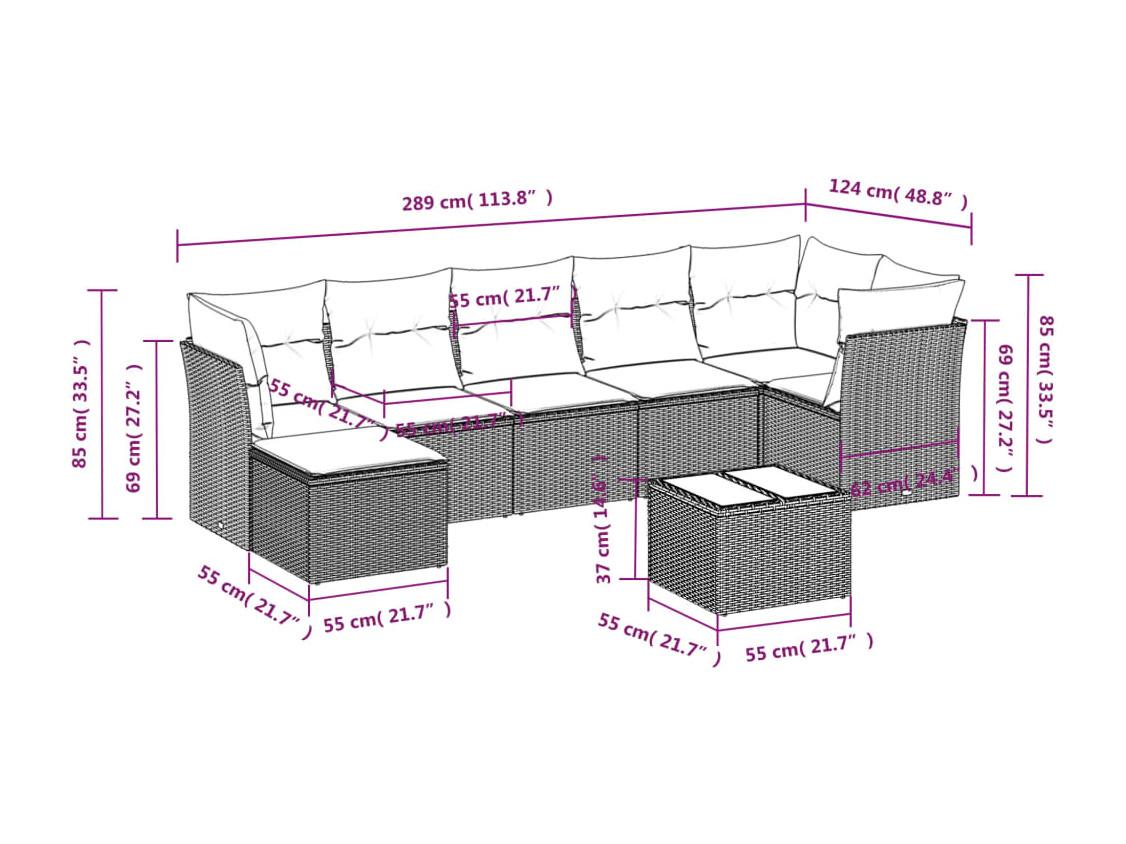 Salon de jardin avec coussins 8 pcs beige résine tressée