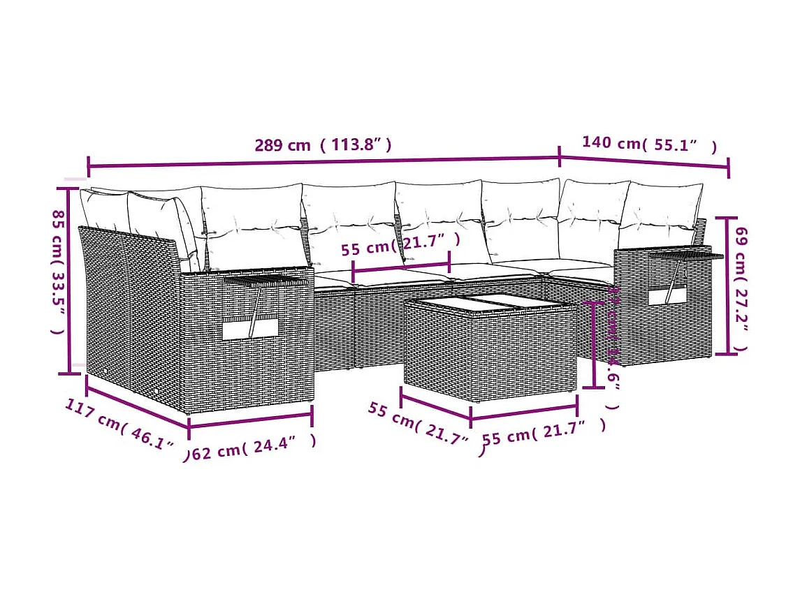 Salon de jardin avec coussins 8 pcs beige résine tressée