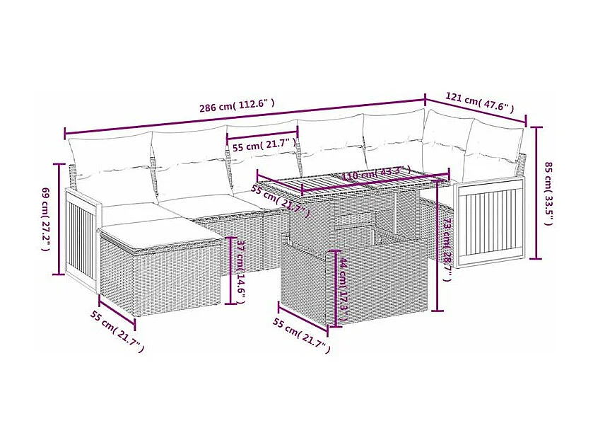 Salon de jardin avec coussins 8 pcs beige résine tressée