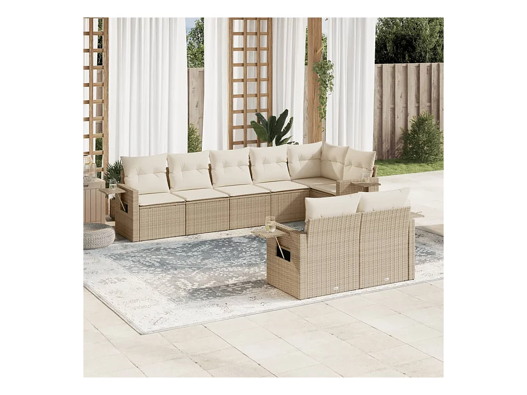 Salon de jardin avec coussins 8 pcs beige résine tressée