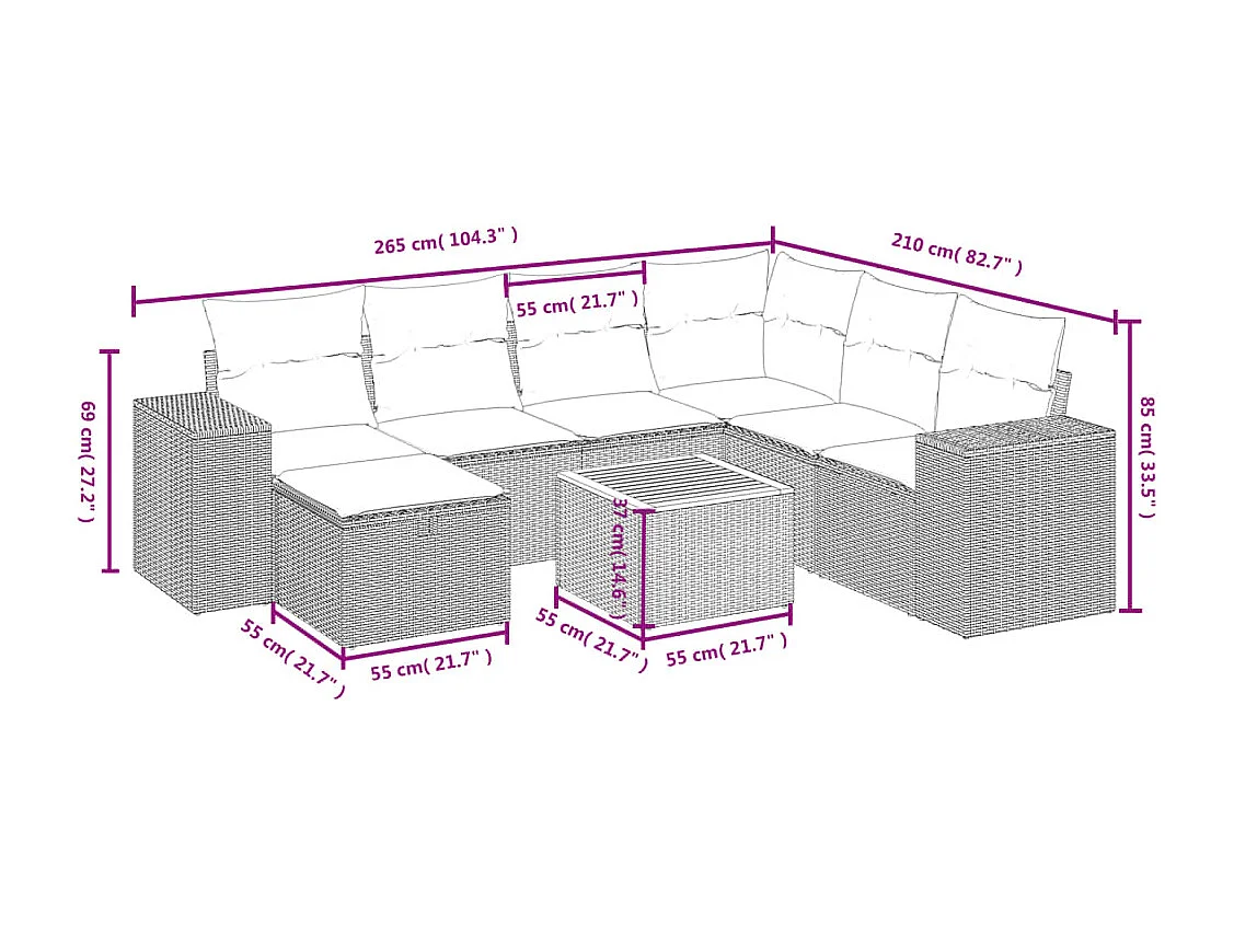 Salon de jardin avec coussins 8pcs mélange beige résine tressée