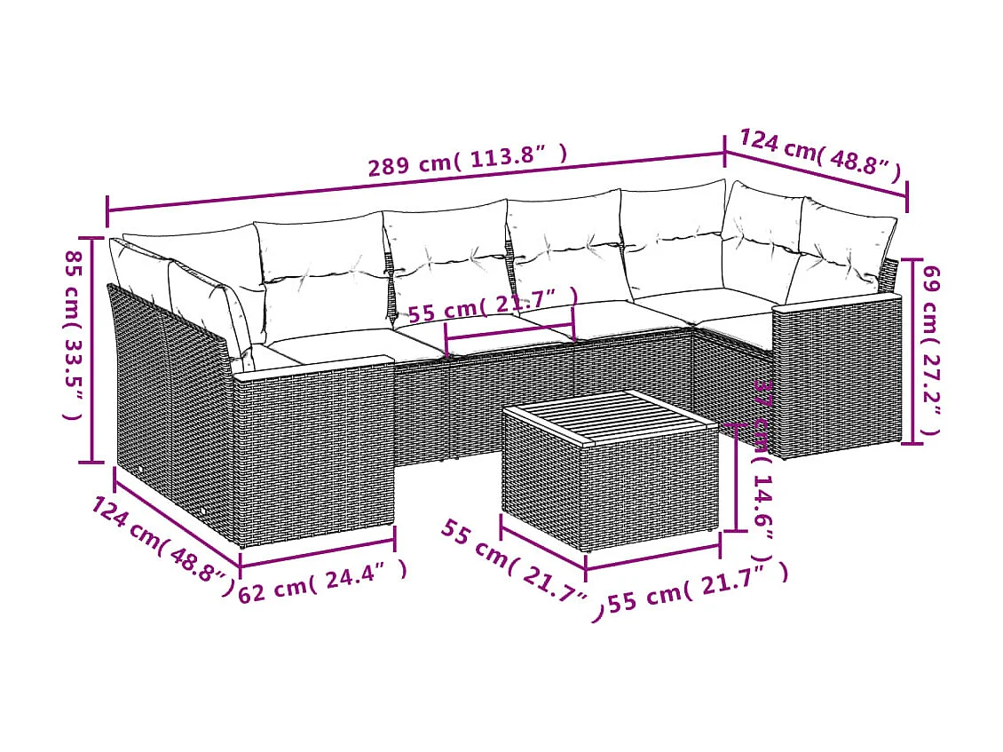 Salon de jardin avec coussins 8pcs mélange beige résine tressée