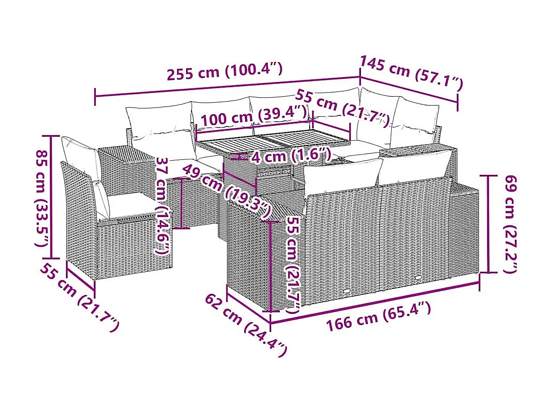 Salon de jardin avec coussins 9 pcs beige résine tressée