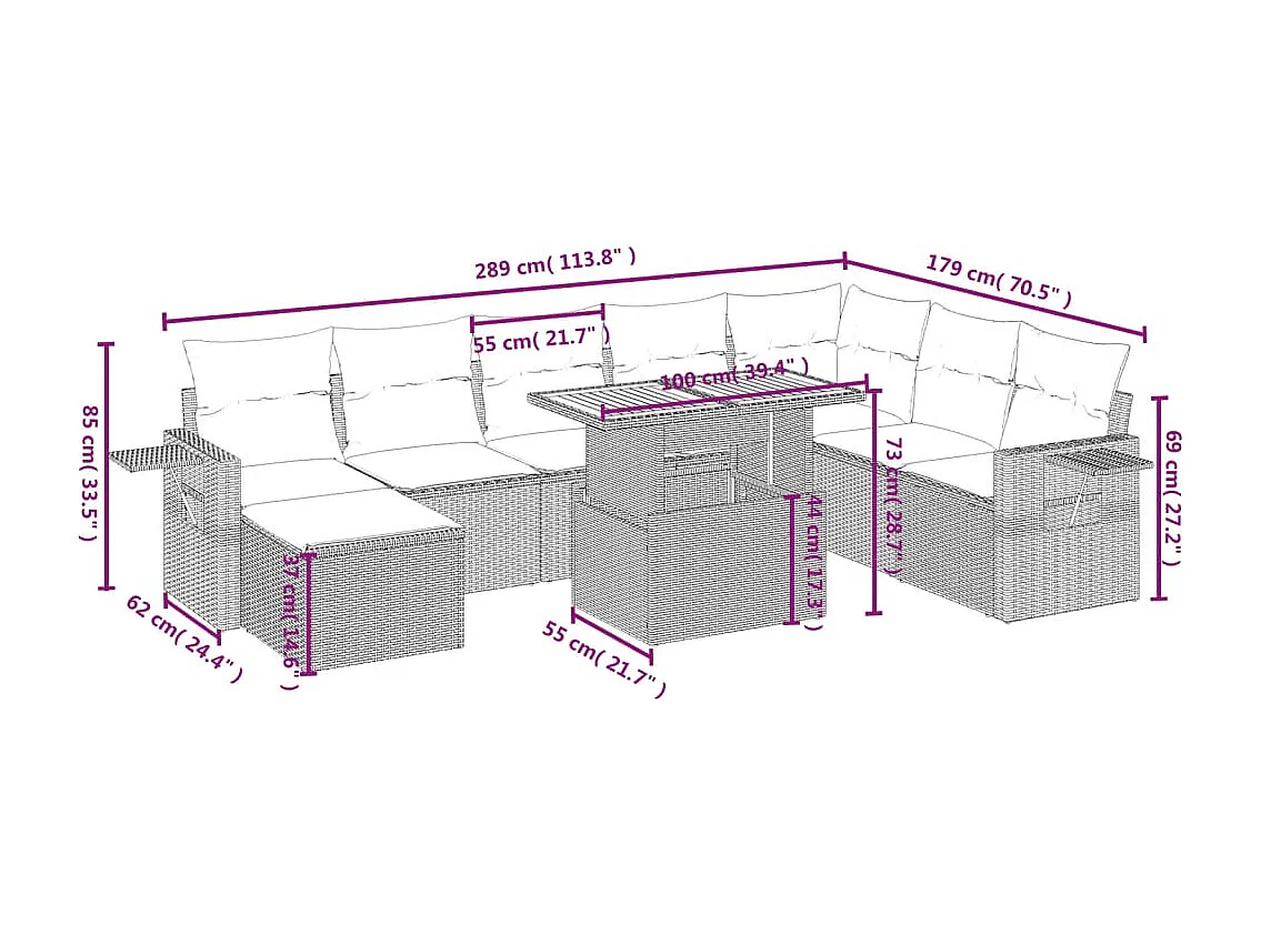 Salon de jardin avec coussins 9 pcs beige résine tressée