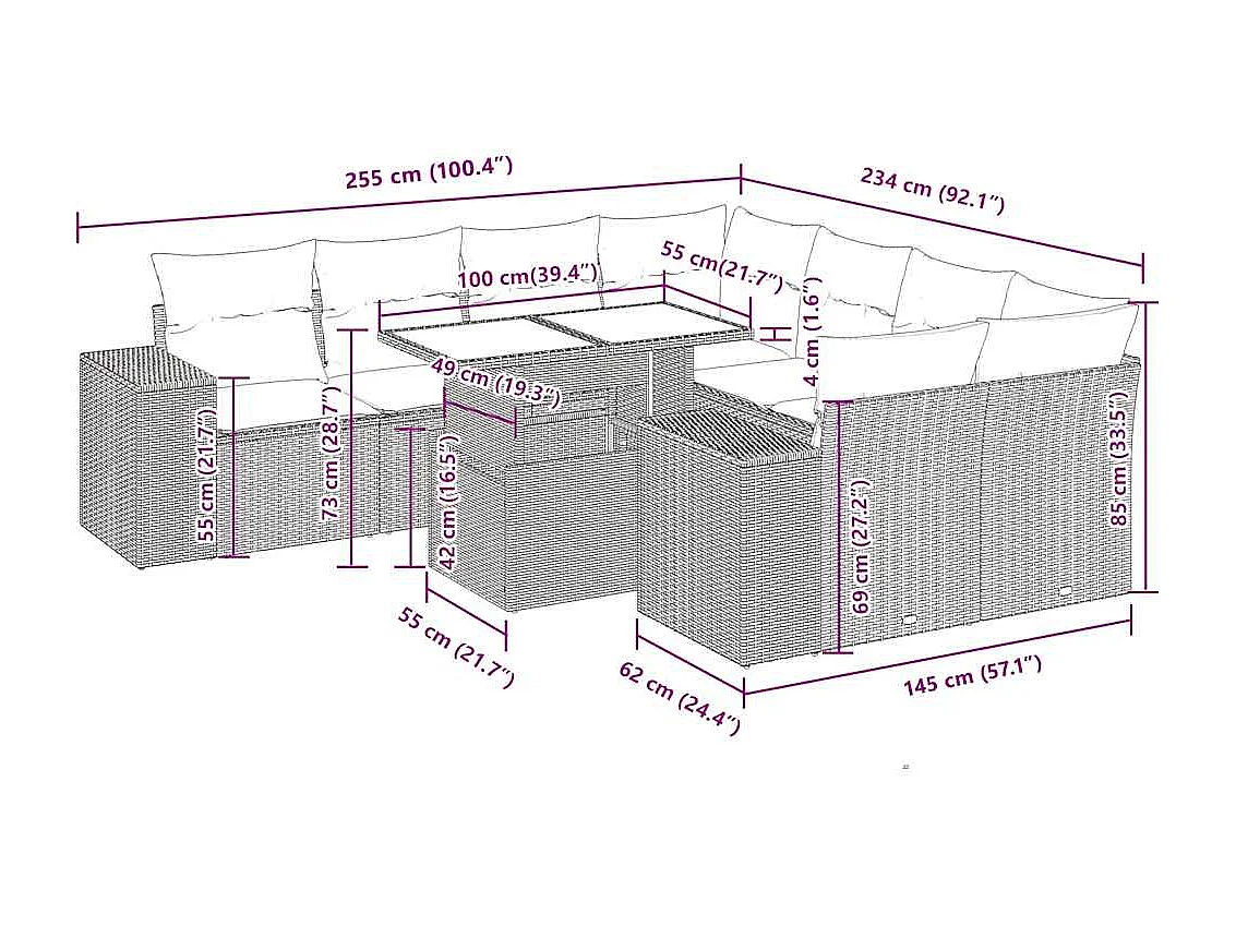 Salon de jardin avec coussins 9 pcs beige résine tressée
