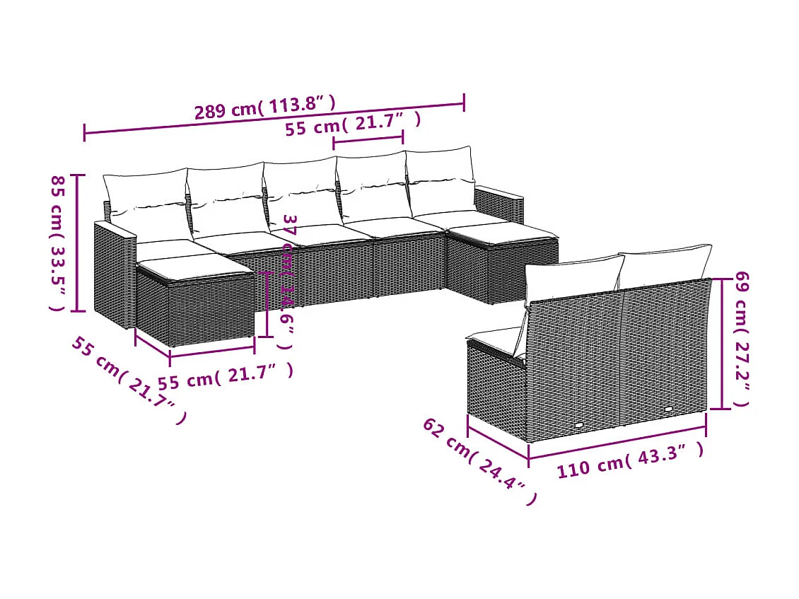 Salon de jardin avec coussins 9 pcs beige résine tressée