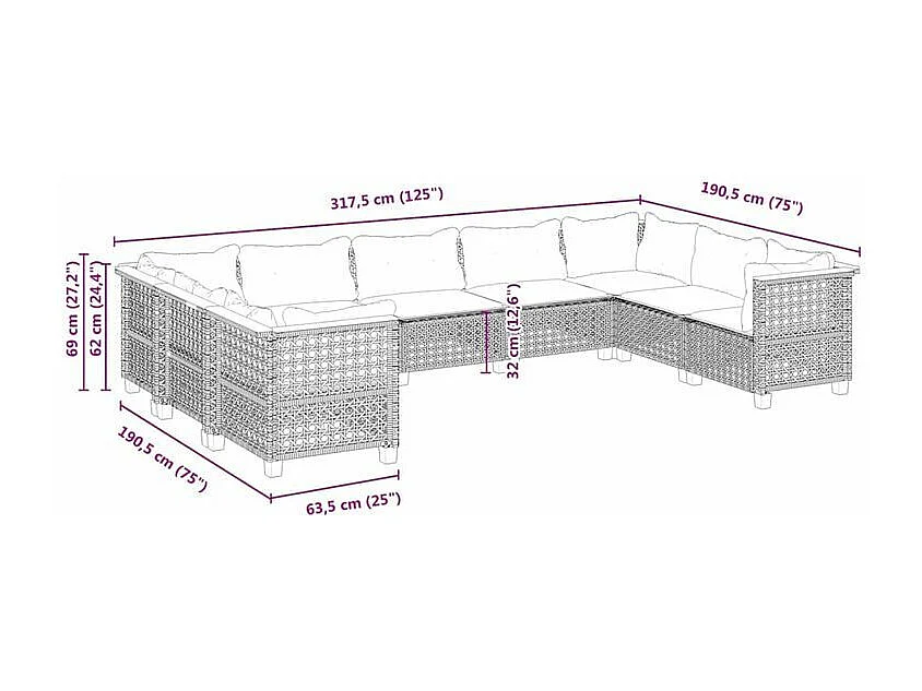 Salon de jardin avec coussins 9 pcs beige résine tressée