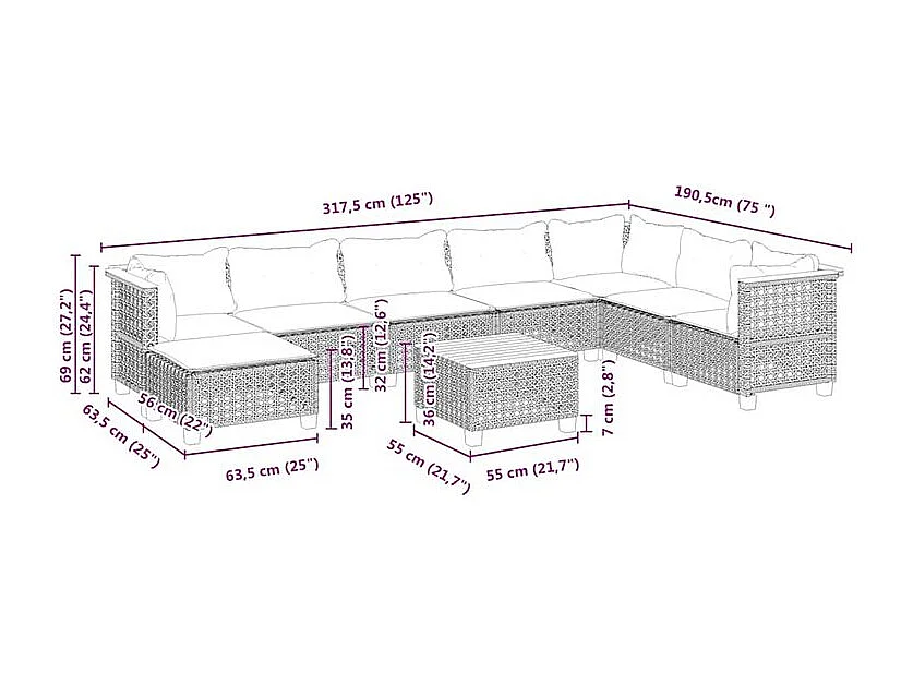 Salon de jardin avec coussins 9 pcs beige résine tressée