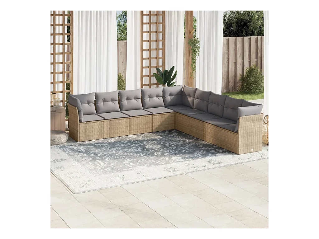 Salon de jardin avec coussins 9 pcs beige résine tressée