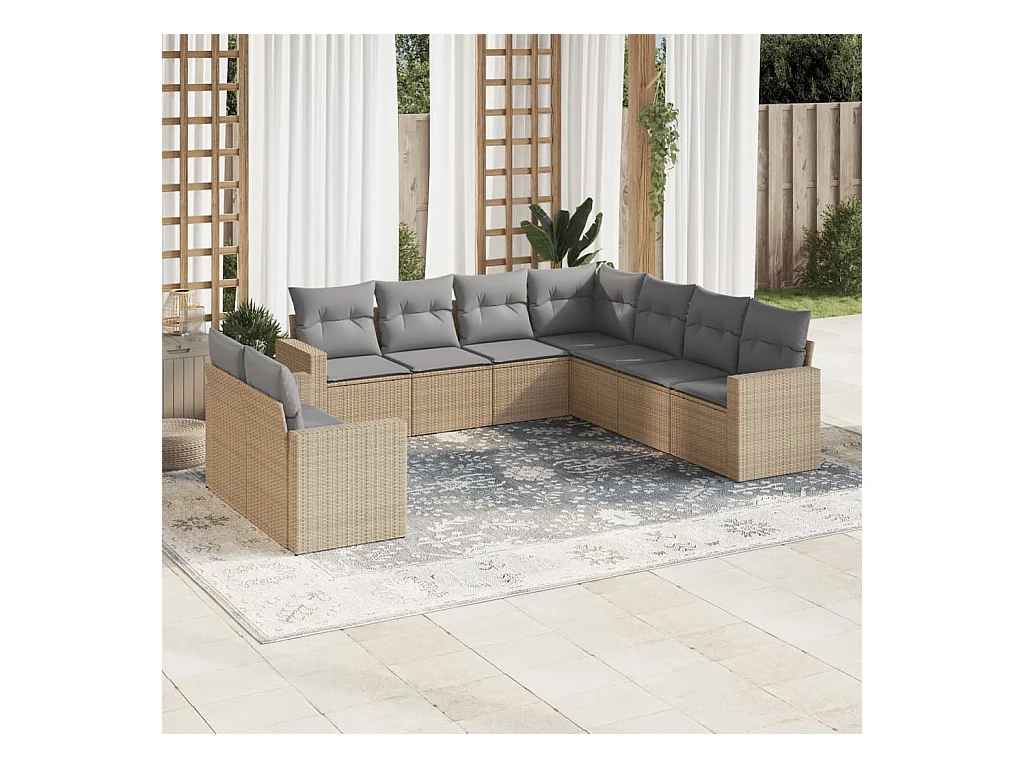 Salon de jardin avec coussins 9 pcs beige résine tressée