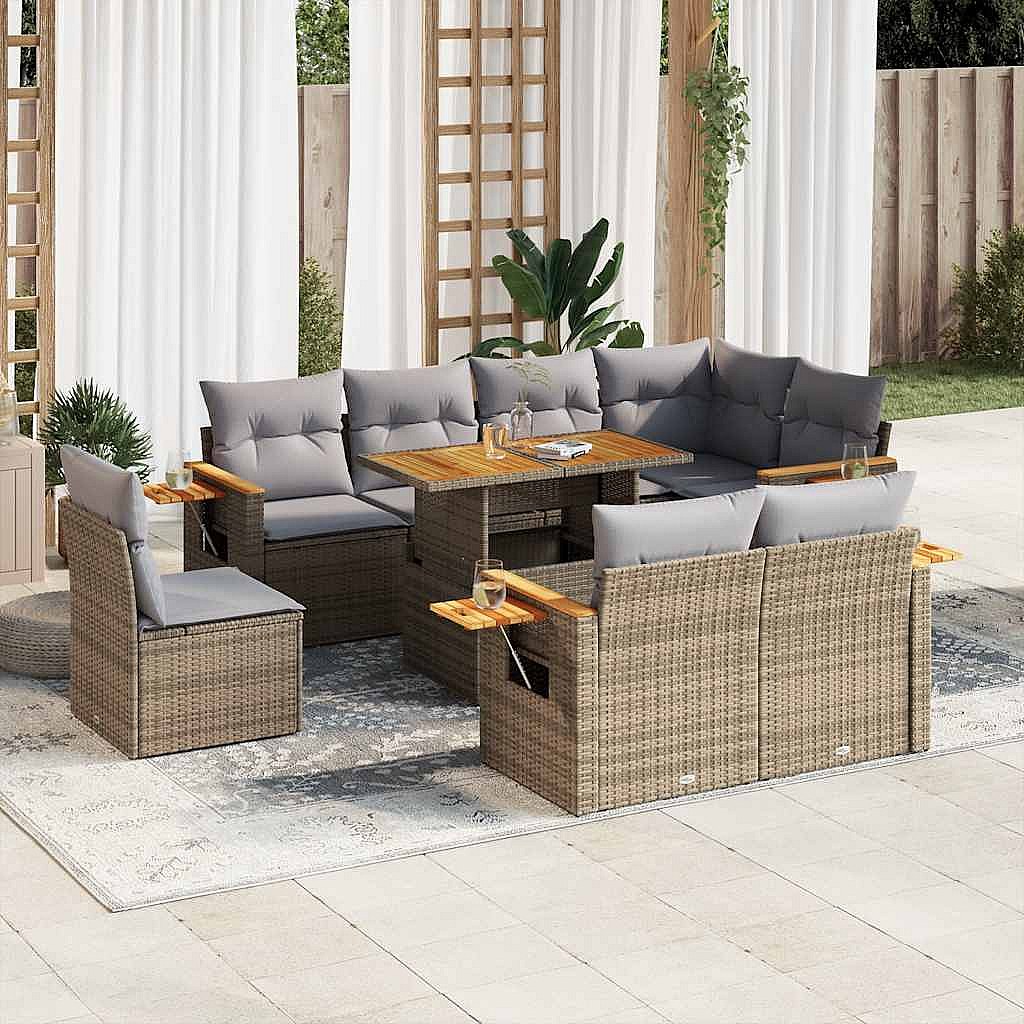 Salon de jardin avec coussins 9 pcs beige résine tressée acacia