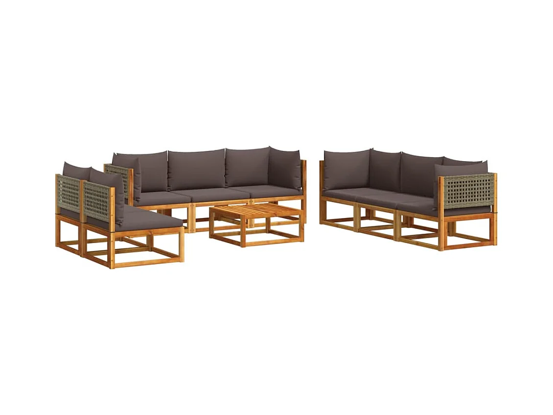 Salon de jardin avec coussins 9 pcs bois massif d'acacia