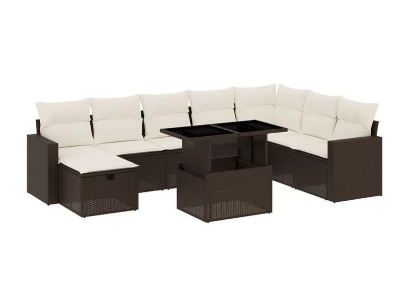 Salon de jardin avec coussins 9 pcs marron résine tressée