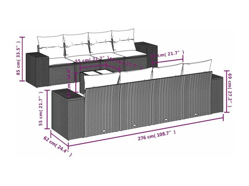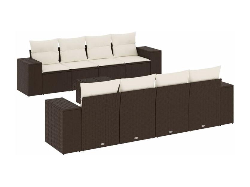 Salon de jardin avec coussins 9 pcs marron résine tressée