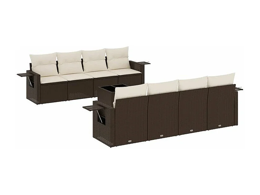Salon de jardin avec coussins 9 pcs marron résine tressée