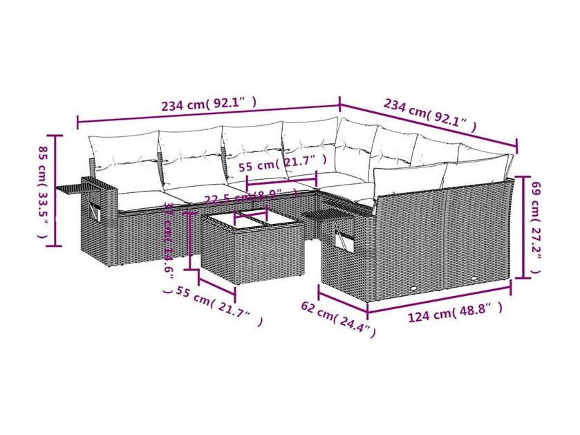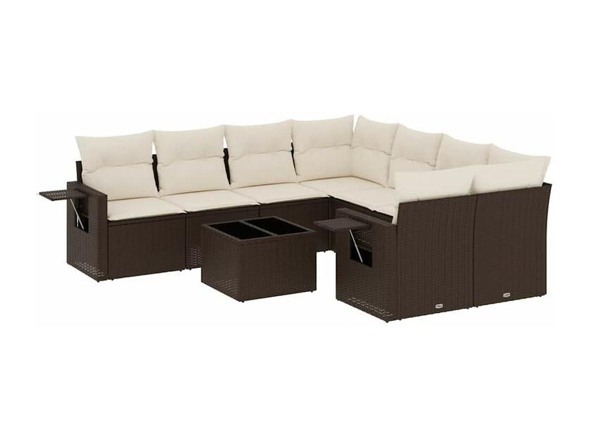 Salon de jardin avec coussins 9 pcs marron résine tressée