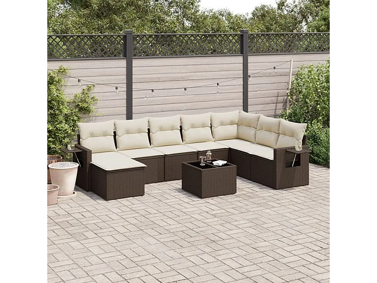 Salon de jardin avec coussins 9 pcs marron résine tressée