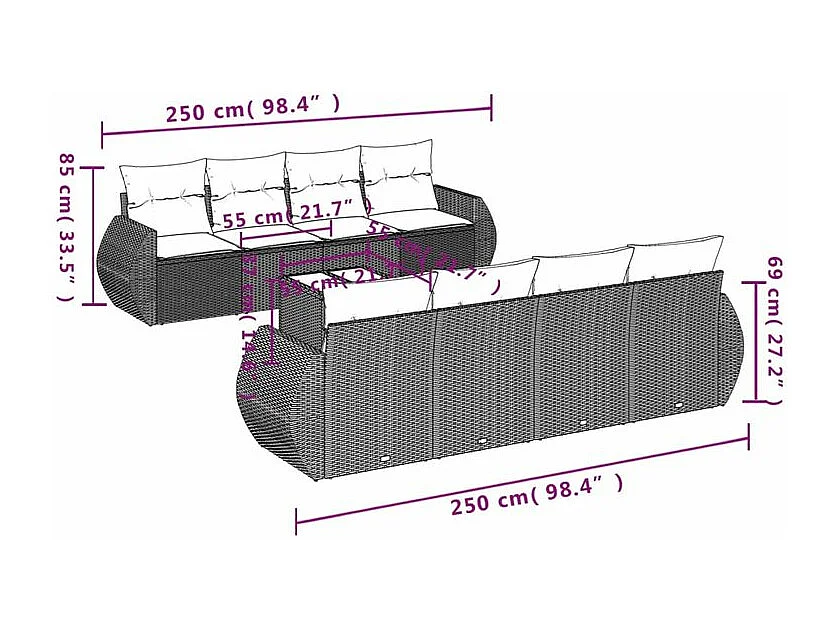 Salon de jardin avec coussins 9 pcs marron résine tressée