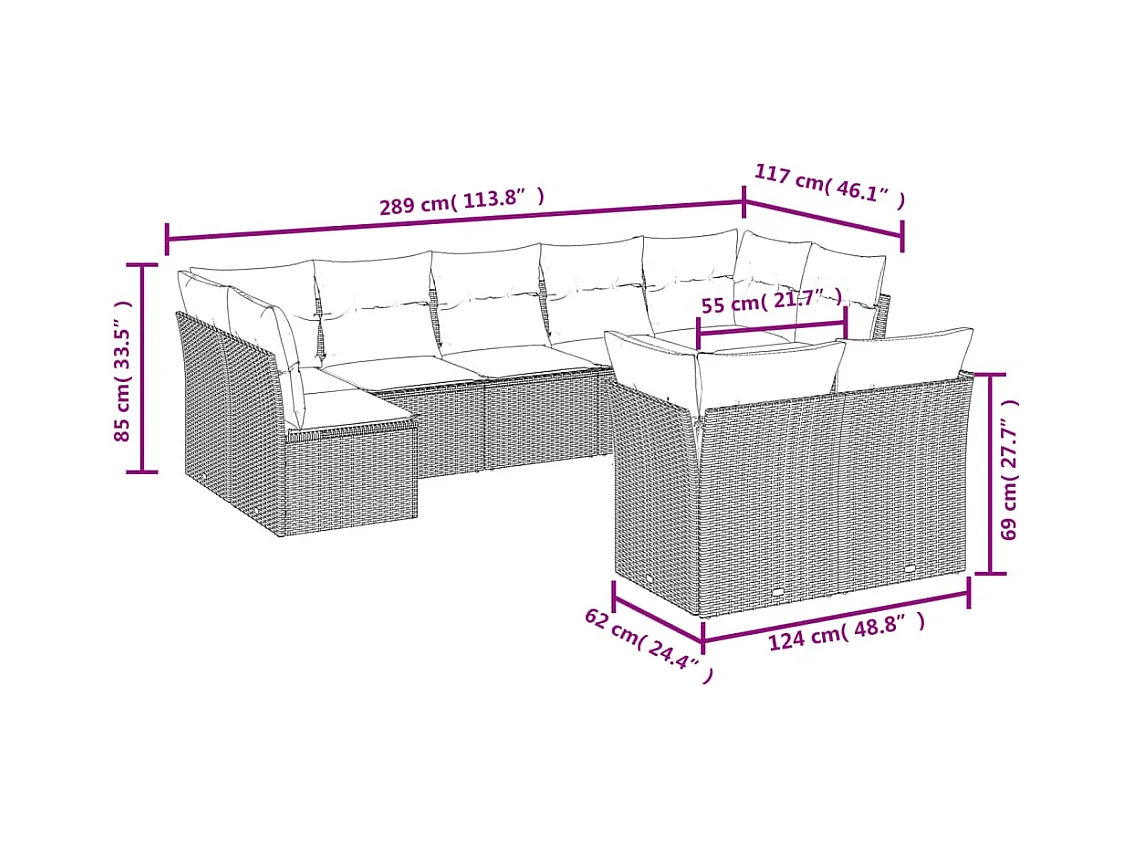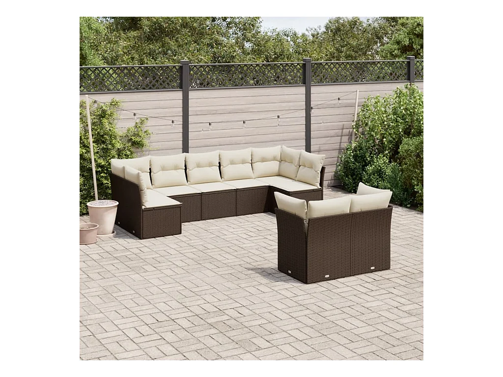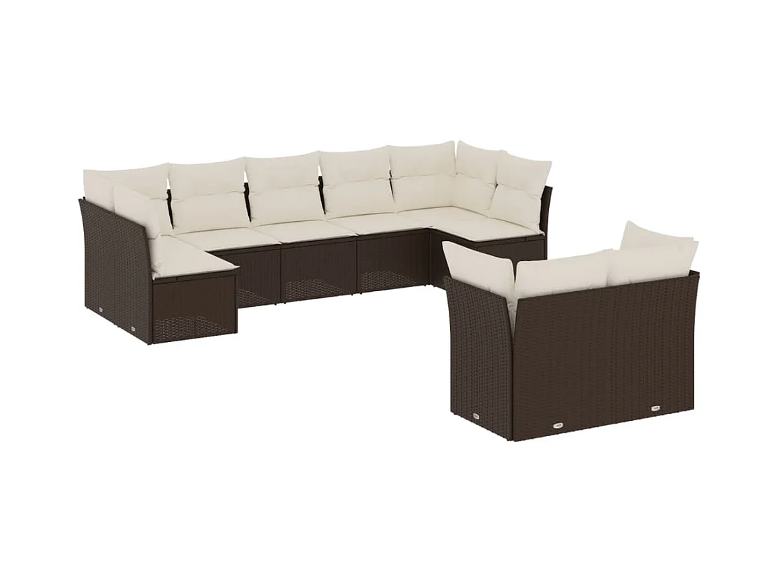 Salon de jardin avec coussins 9 pcs marron résine tressée