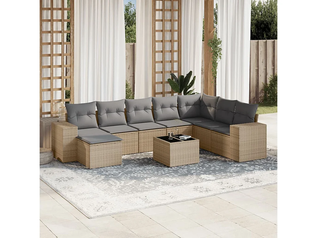 Salon de jardin avec coussins 9 pièces beige résine tressée