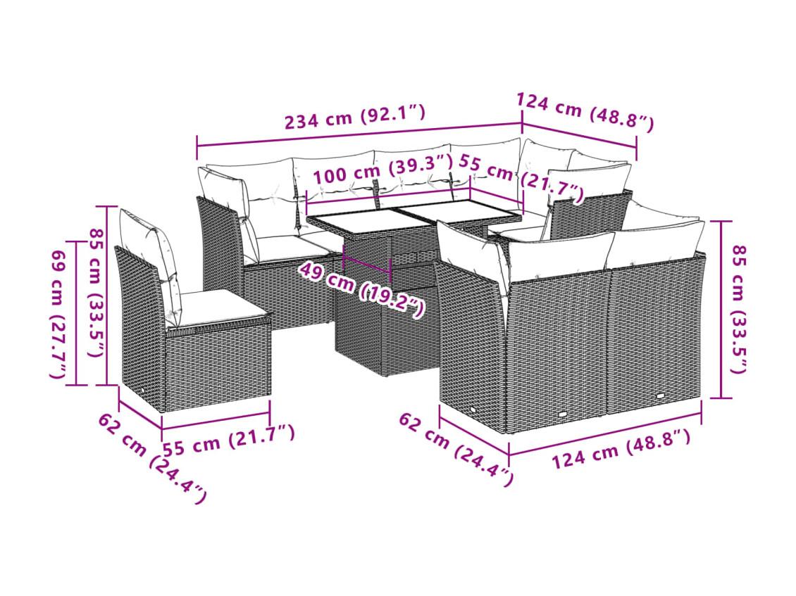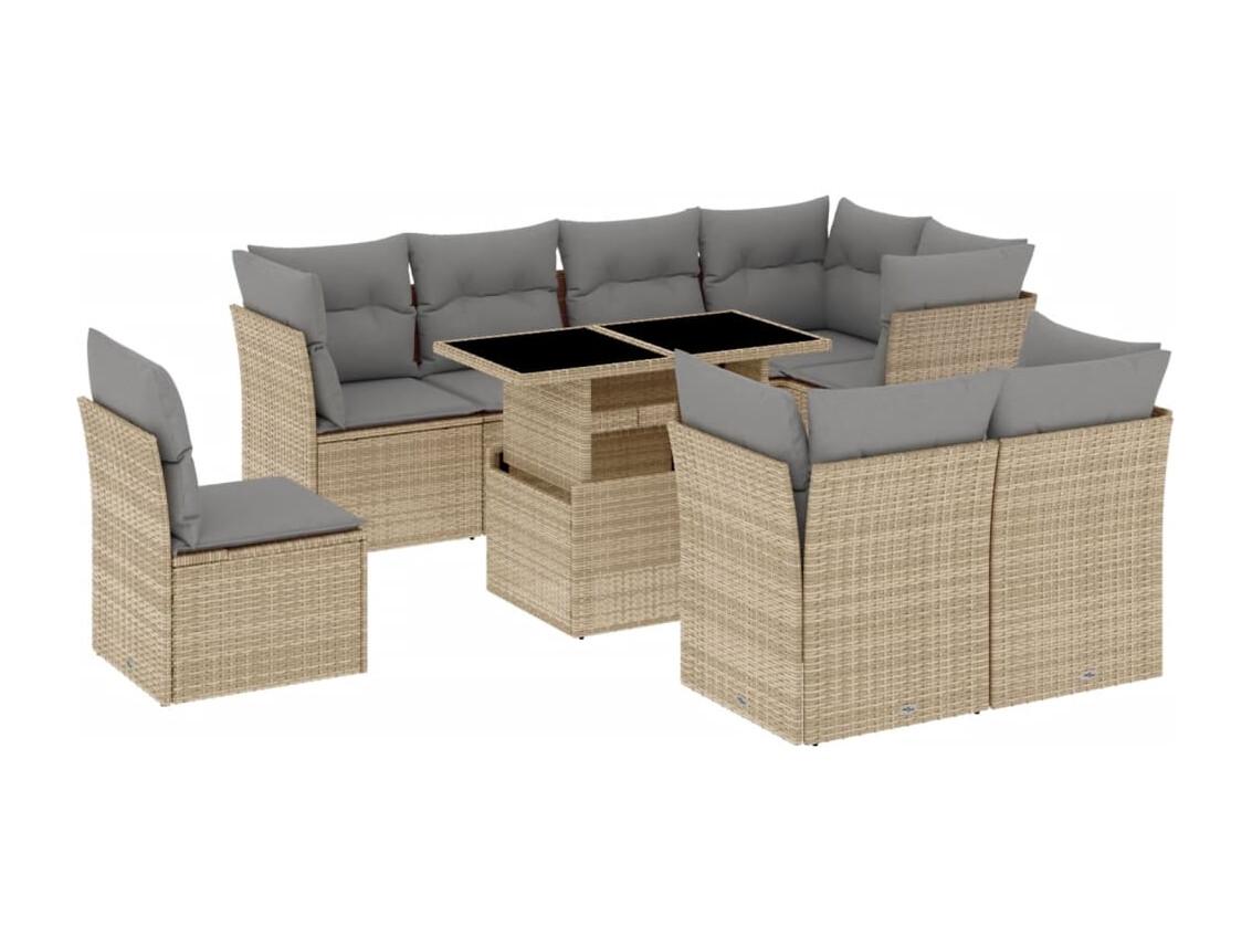 Salon de jardin avec coussins 9 pièces beige résine tressée