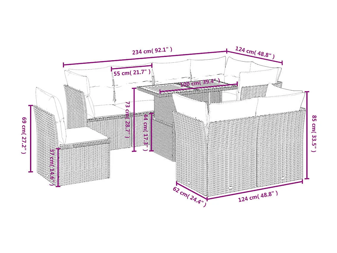 Salon de jardin avec coussins 9 pièces beige résine tressée