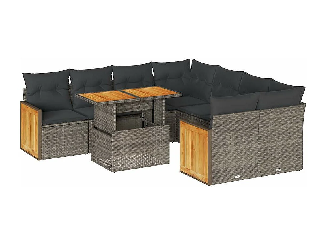 Salon de jardin avec coussins 9 pièces gris résine tressée acacia