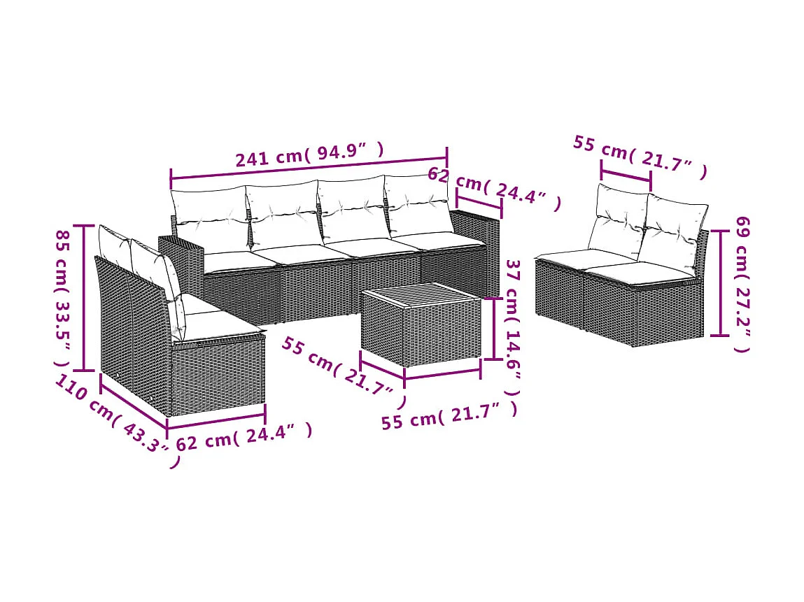 Salon de jardin avec coussins 9pcs mélange beige résine tressée