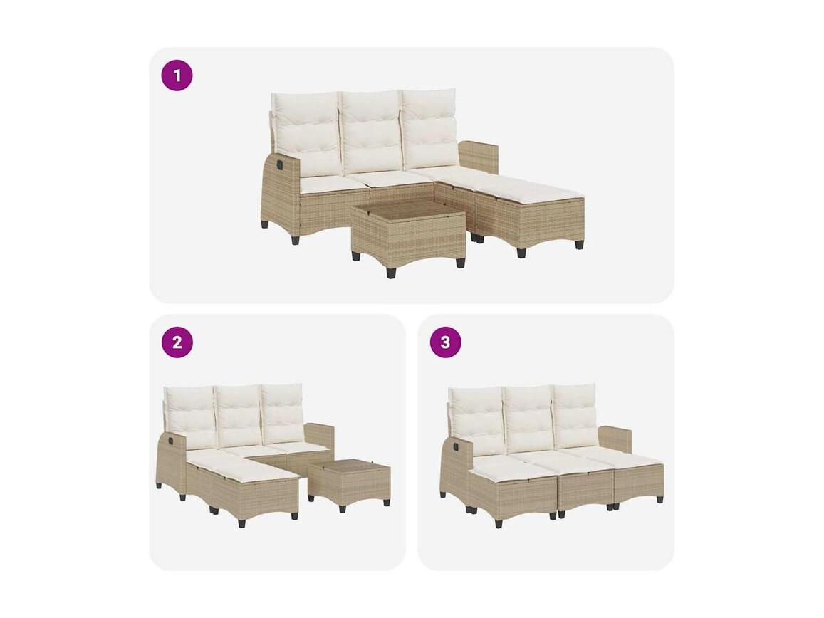 Salon de jardin avec coussins forme de L 3 pcs beige polyrotin