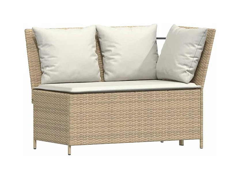 Salon de jardin avec coussins forme de L 4 pcs beige polyrotin