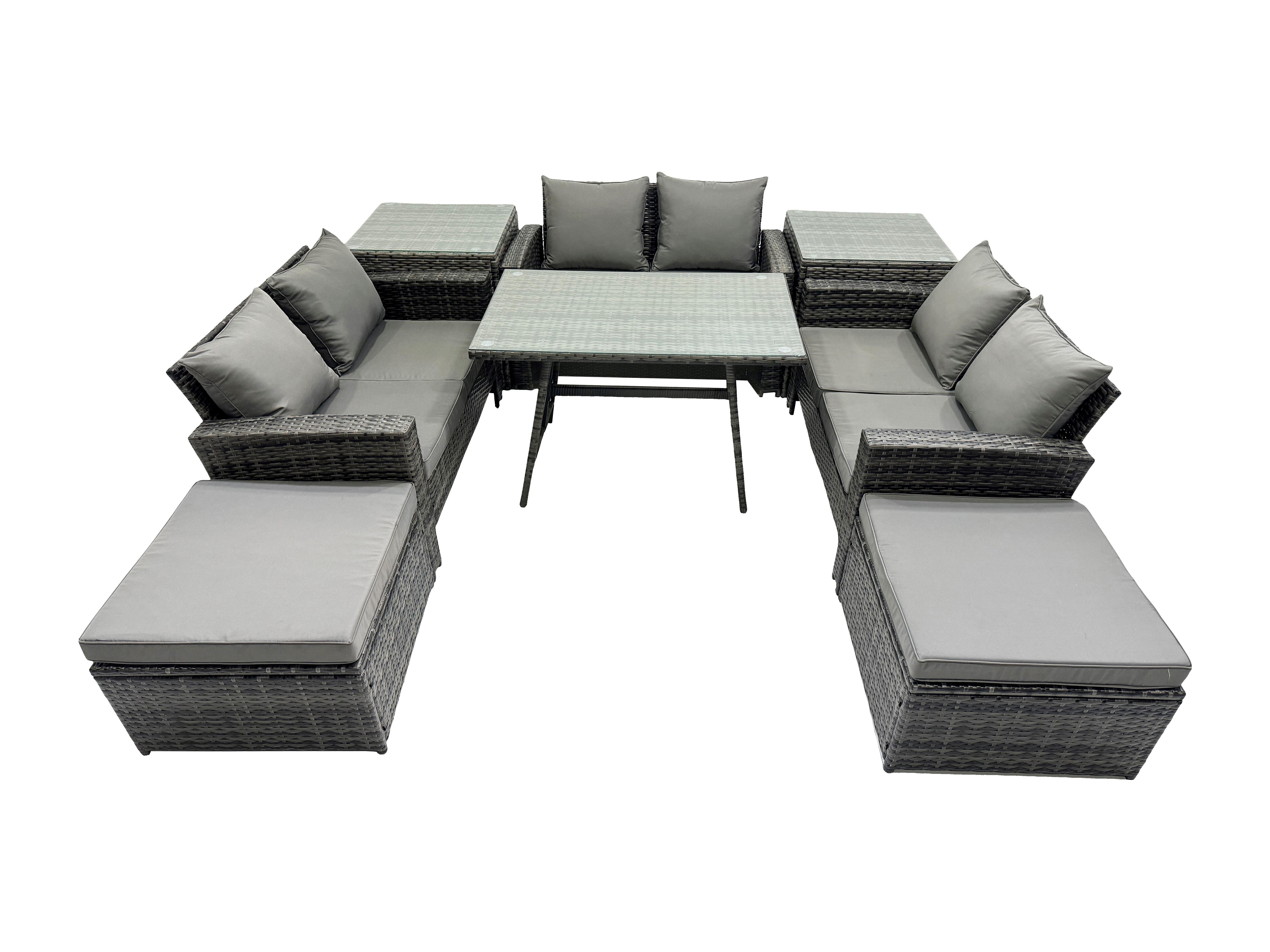 Salon de jardin avec Table à manger rectangulaire Canapé 2 places 2 Grand tabourets 2 Tables d'appoint Gris foncé mixte