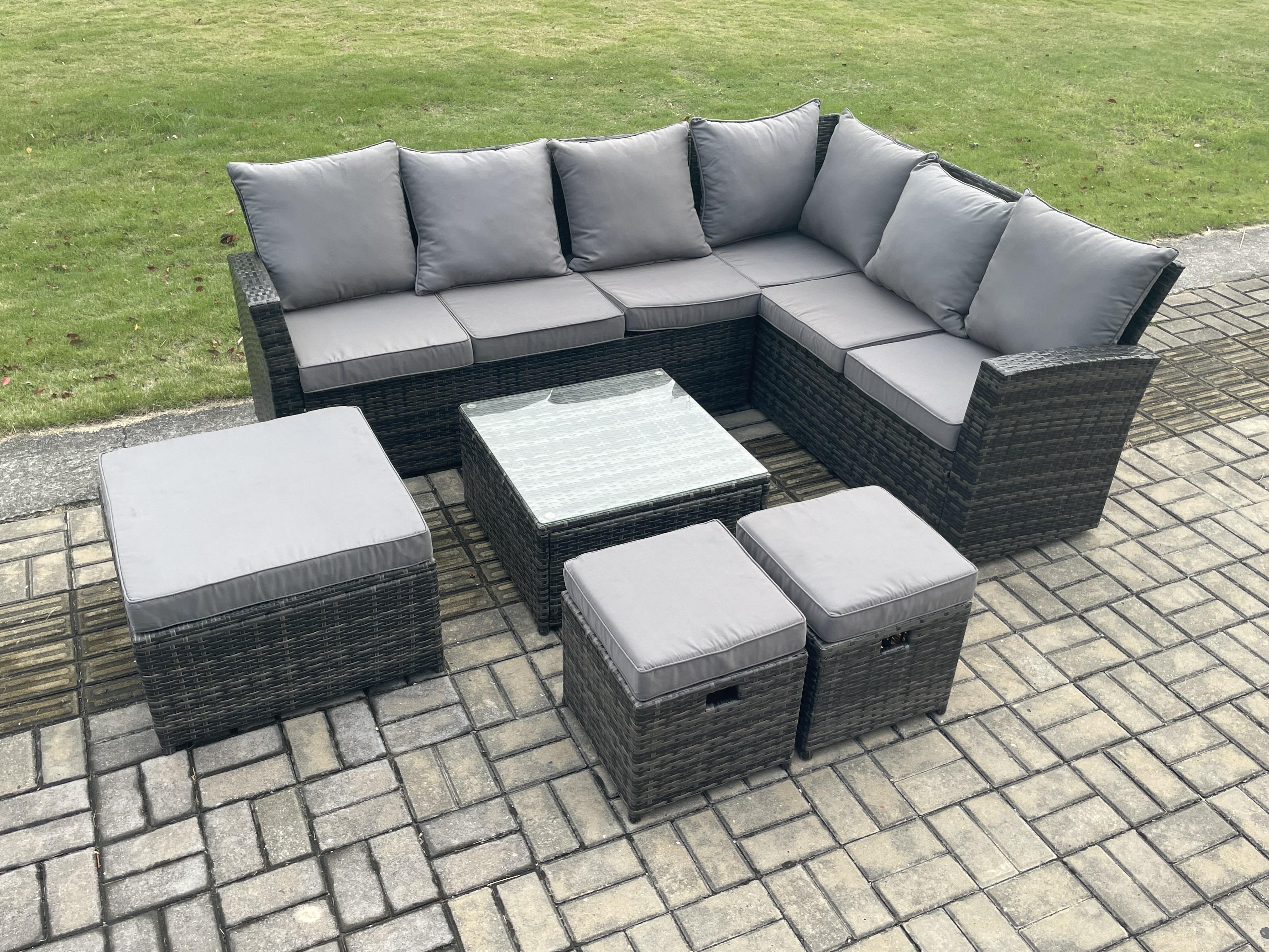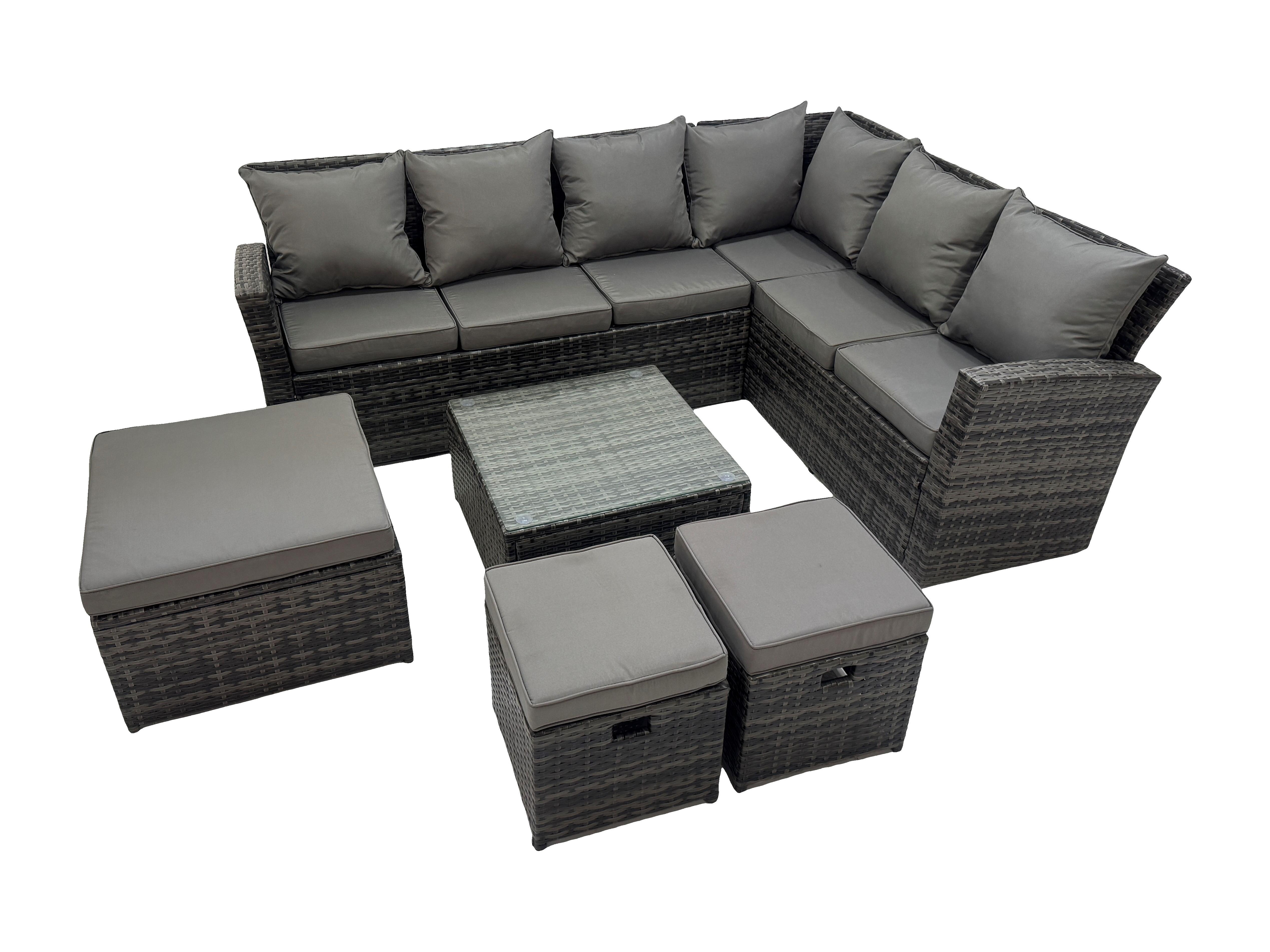 Salon de jardin avec Table basse carrée 3 Tabourets 9 places Gris foncé mixte