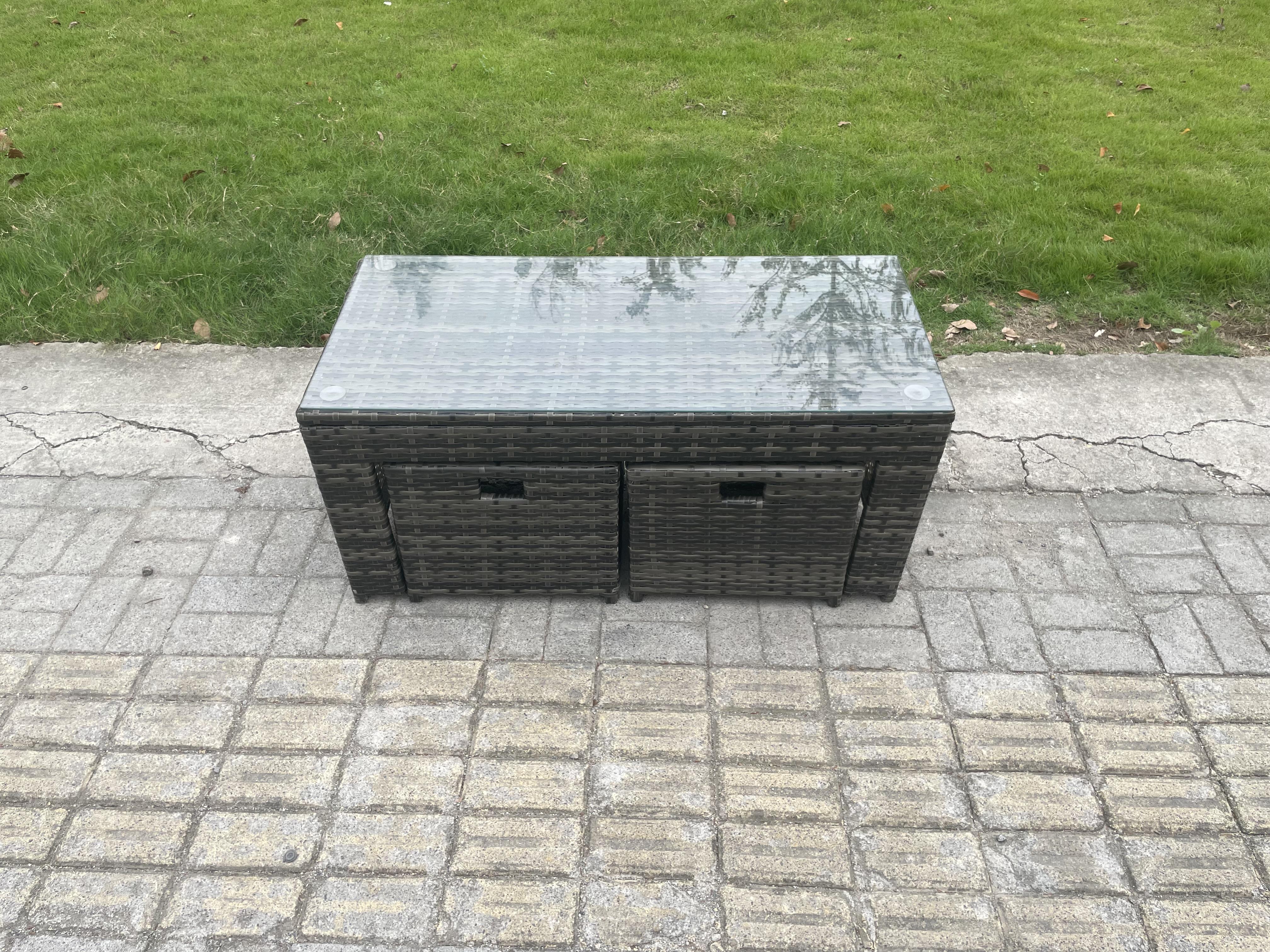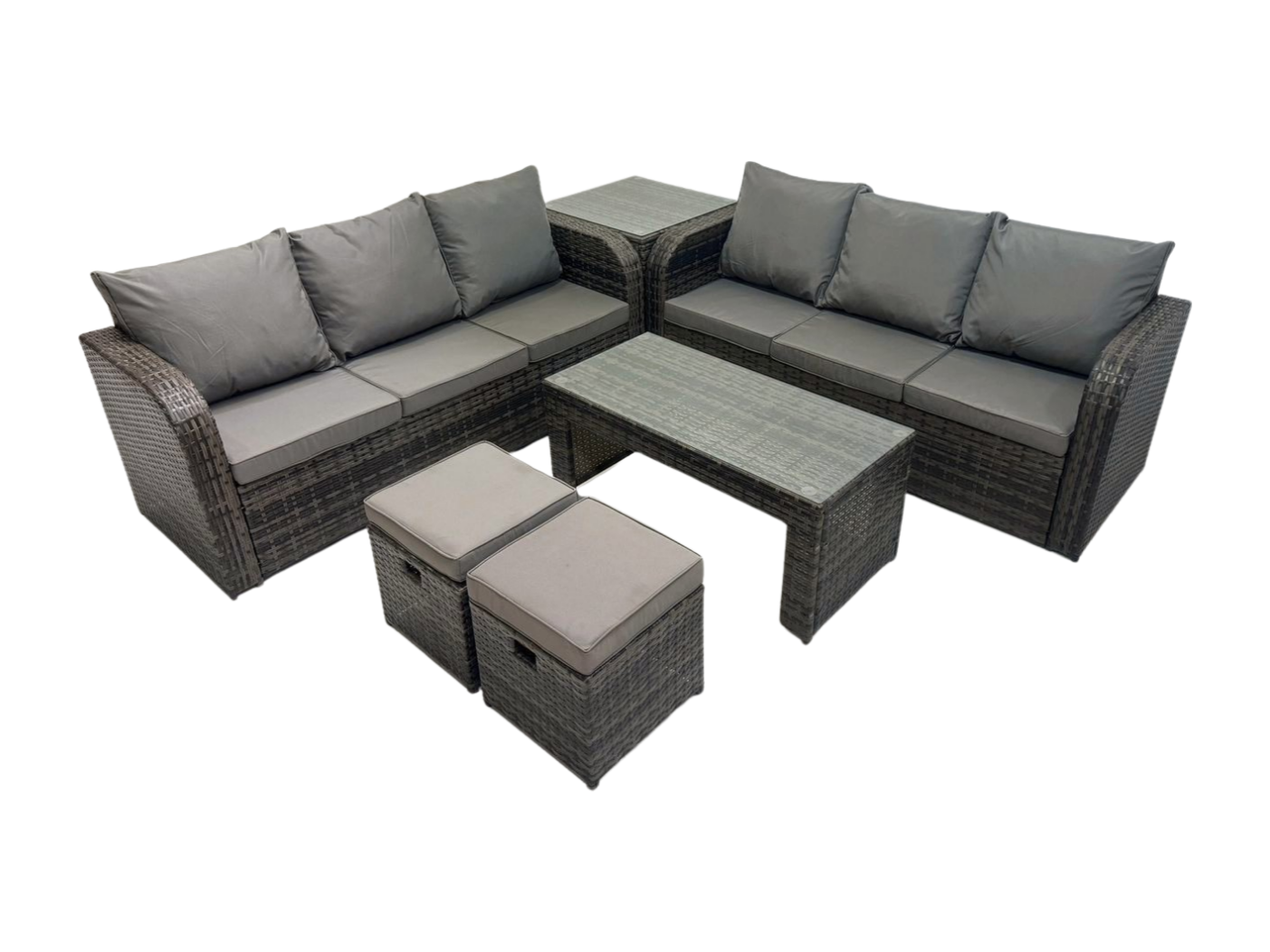 Salon de jardin avec Table basse rectangulaire 2 Petits tabourets Canapé 3 places Table d'appoint Gris foncé mixte