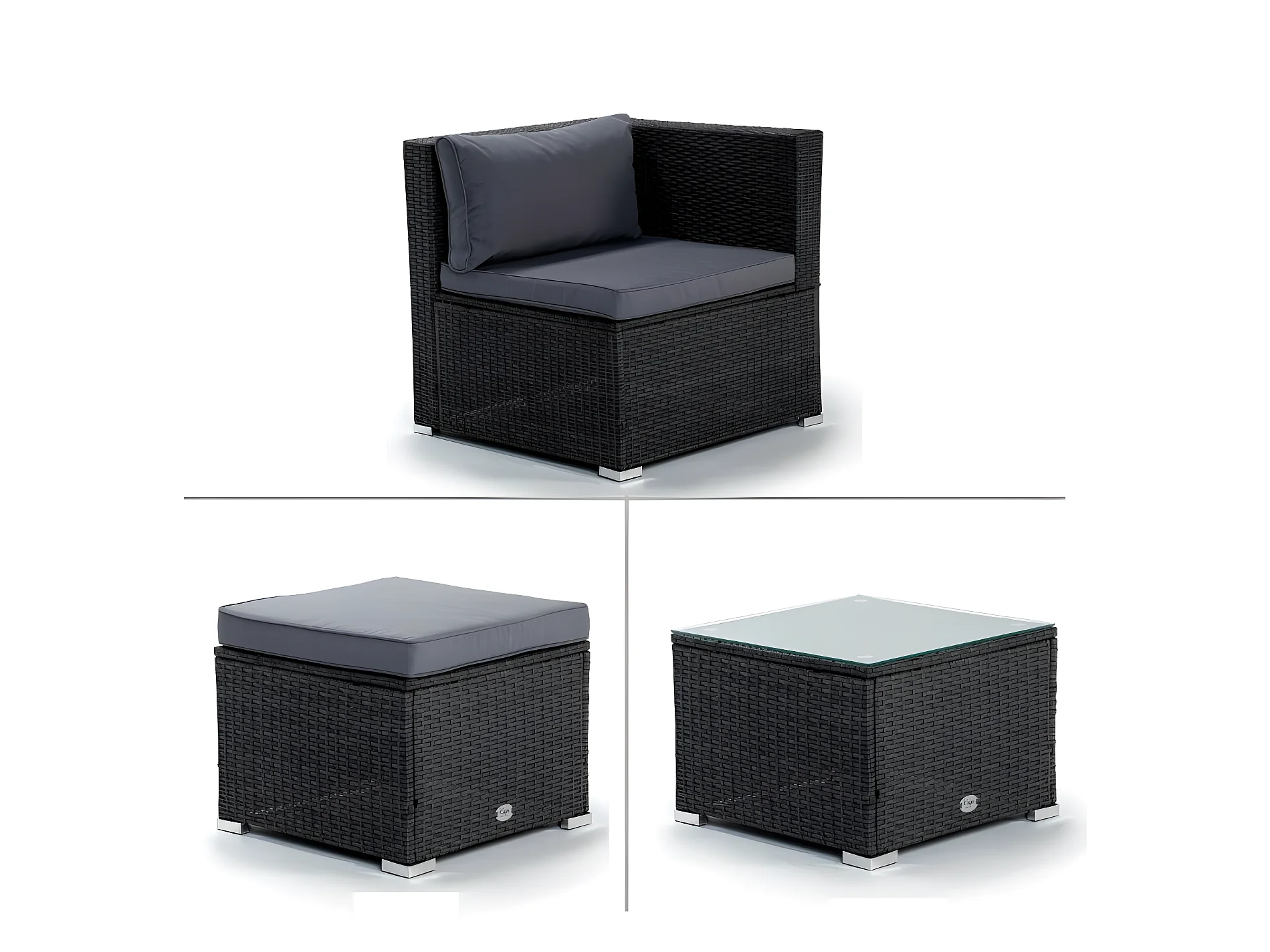 Salon de jardin Bahamas Double Set 3 Places Gris Rotin Synthétique Kiefergarden