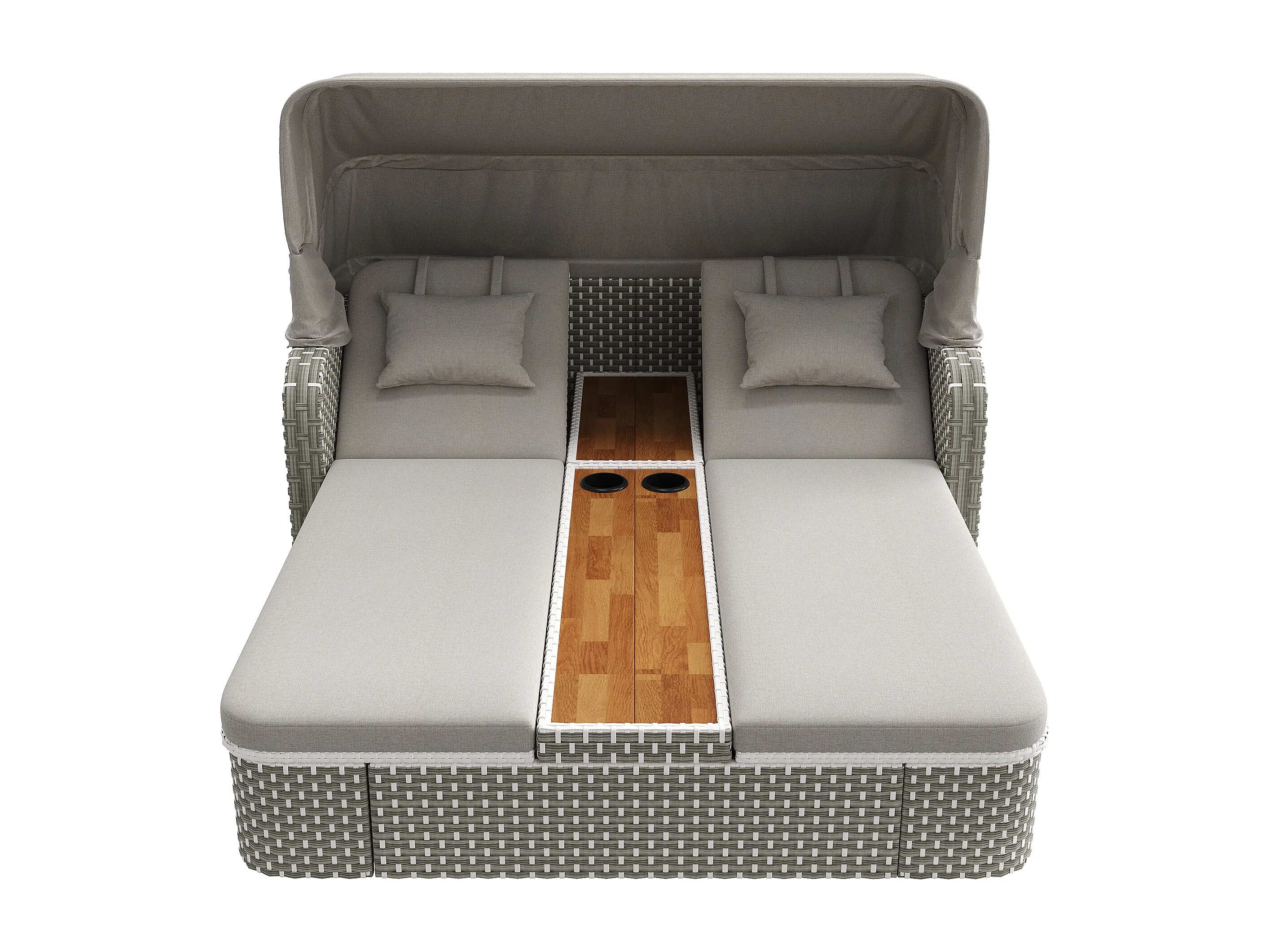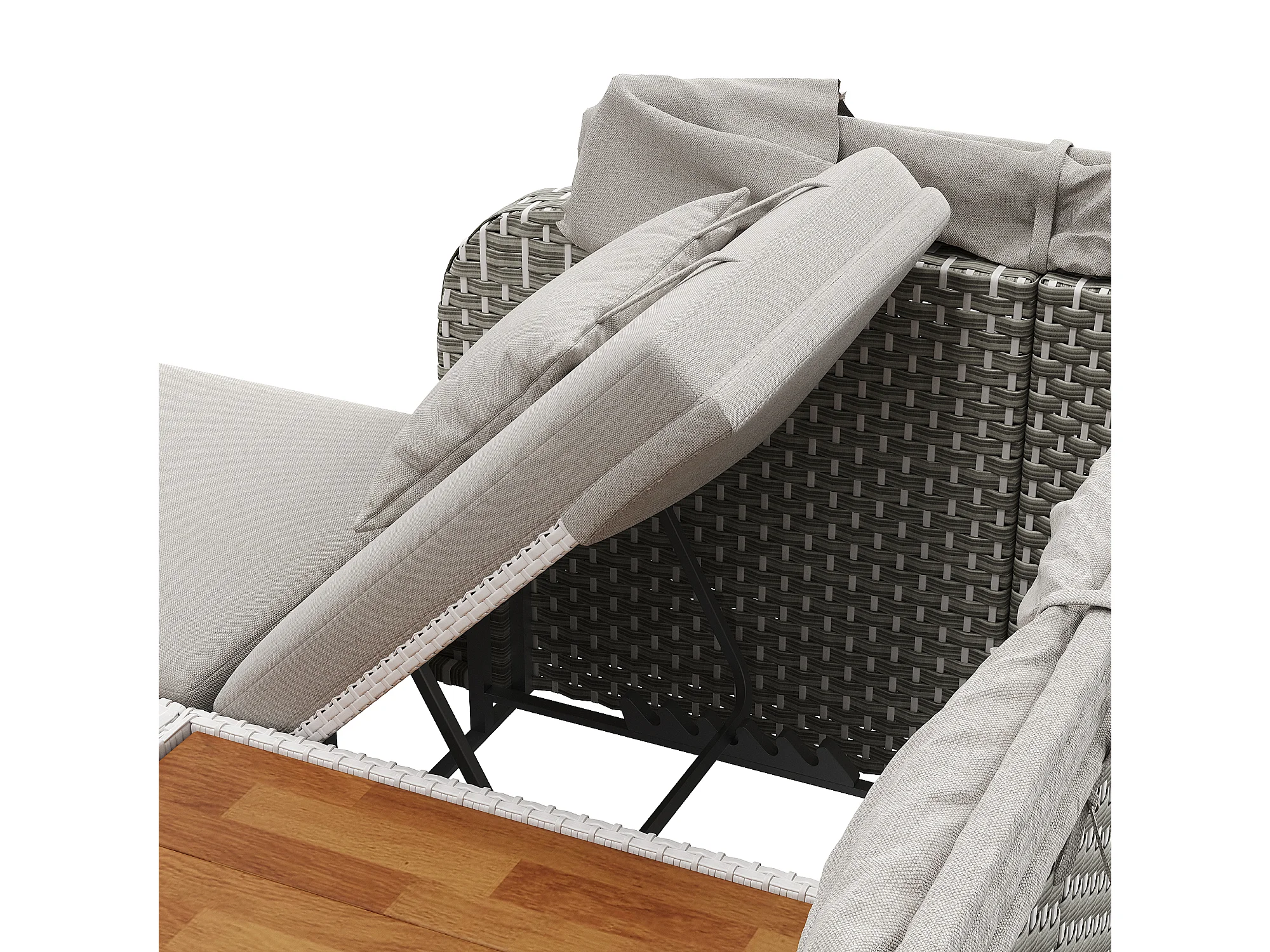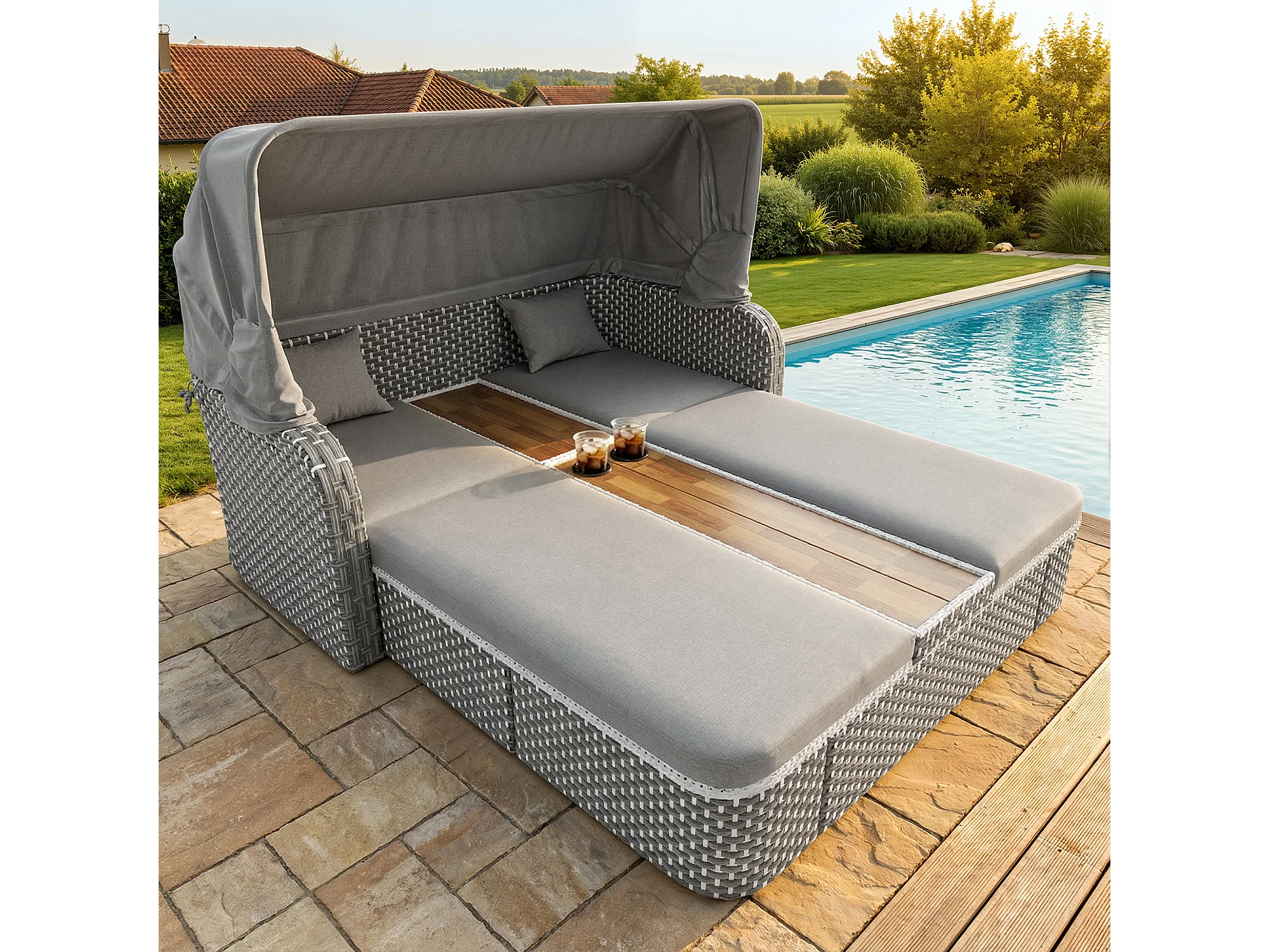 Salon de jardin - Bain de soleil - canapé de jardin - en acier galvanisé - 2 places - Bois d'acacia - avec Pare soleil réglable - gris