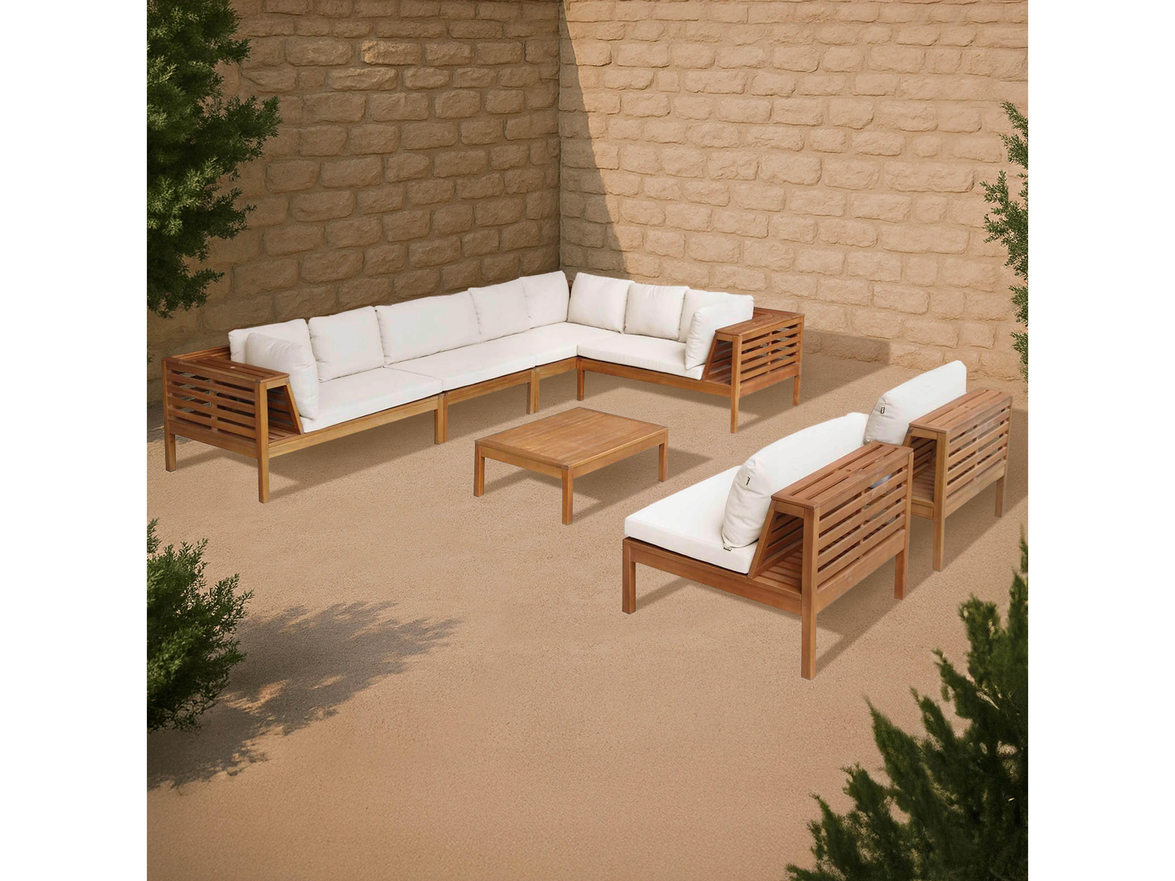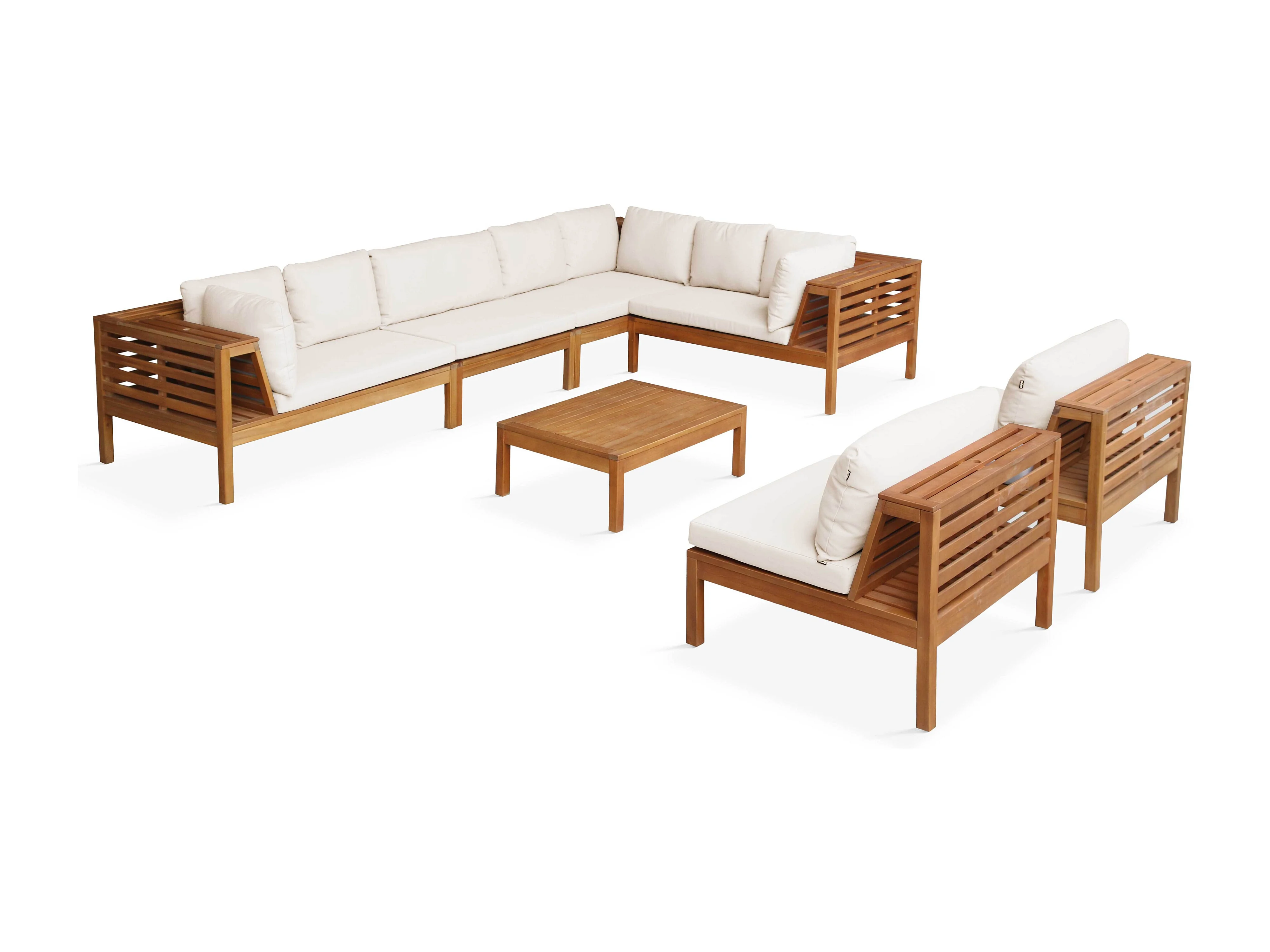 Salon de jardin bas d'angle 8 places en bois d'eucalyptus écru