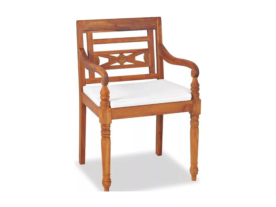 Salon de jardin Batavia teck massif foncé avec coussins blanc Aqual
