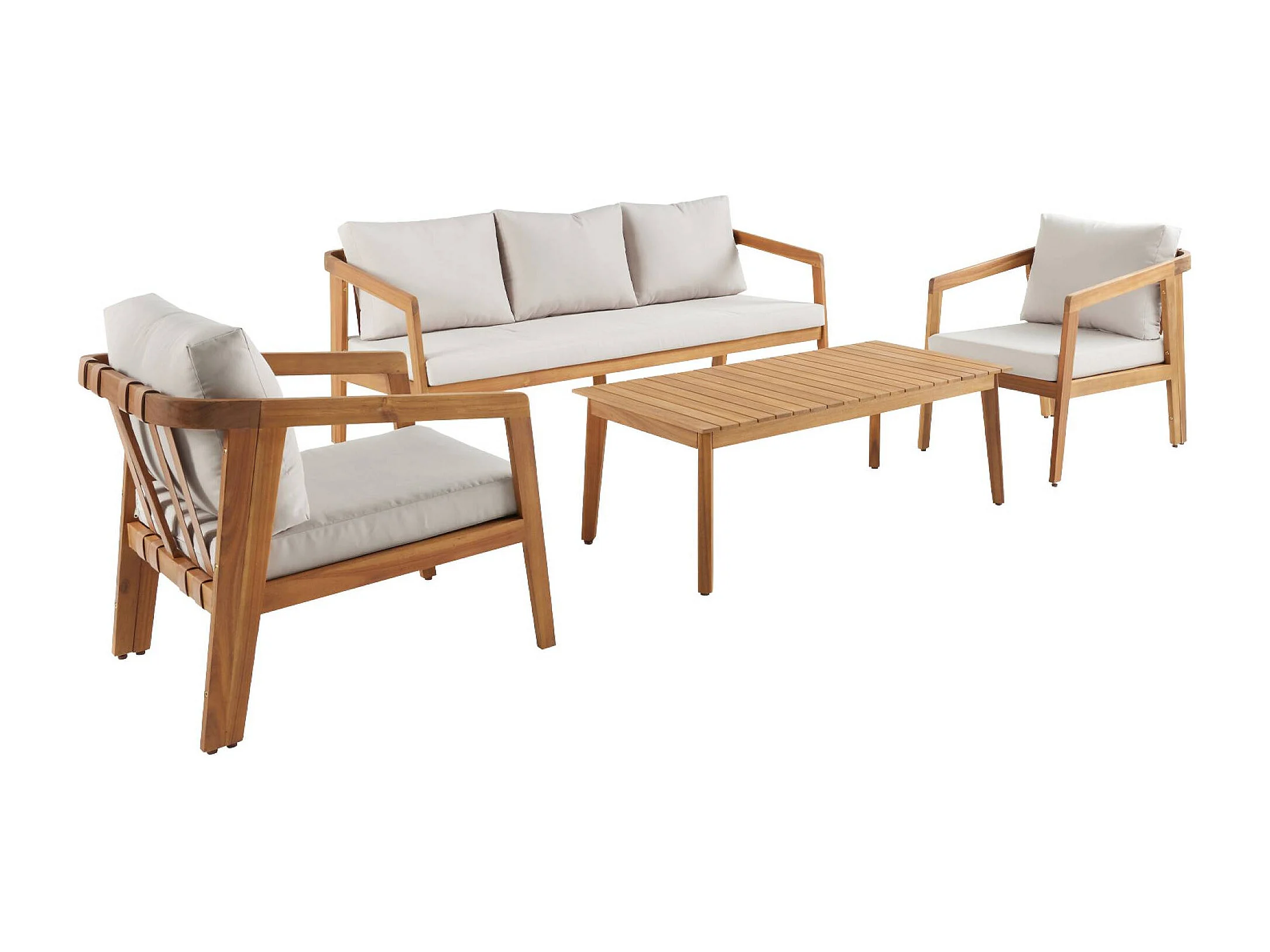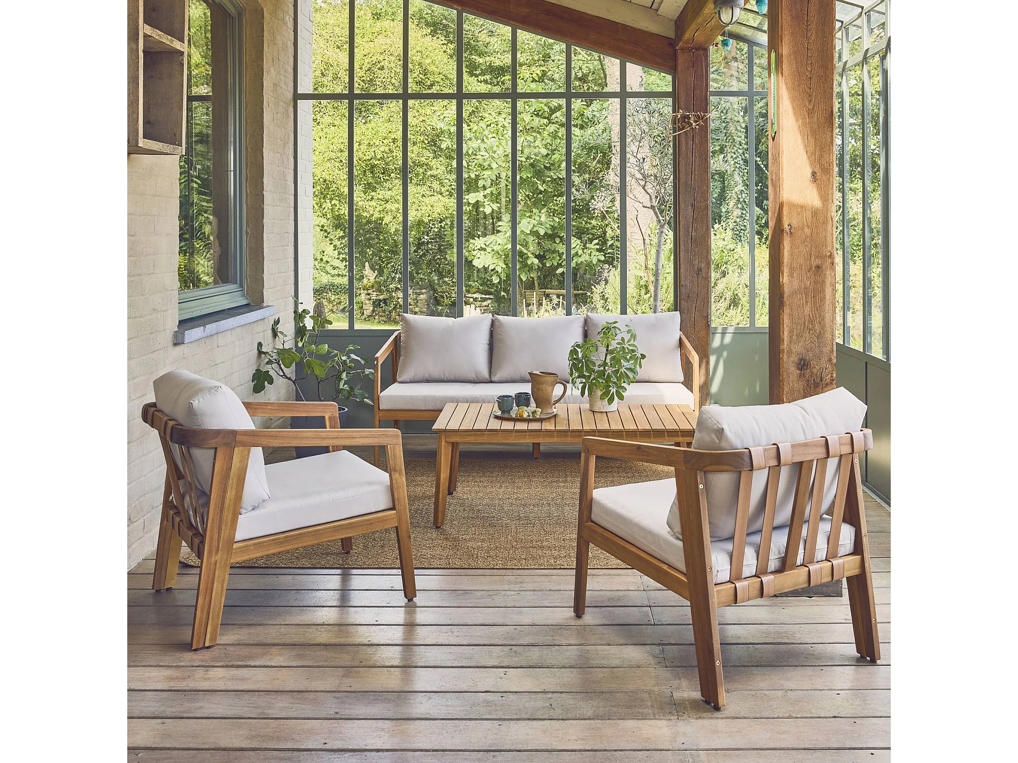 Salon de jardin beige 5 places bois d'acacia LOBERIA avec lanières effet cuir