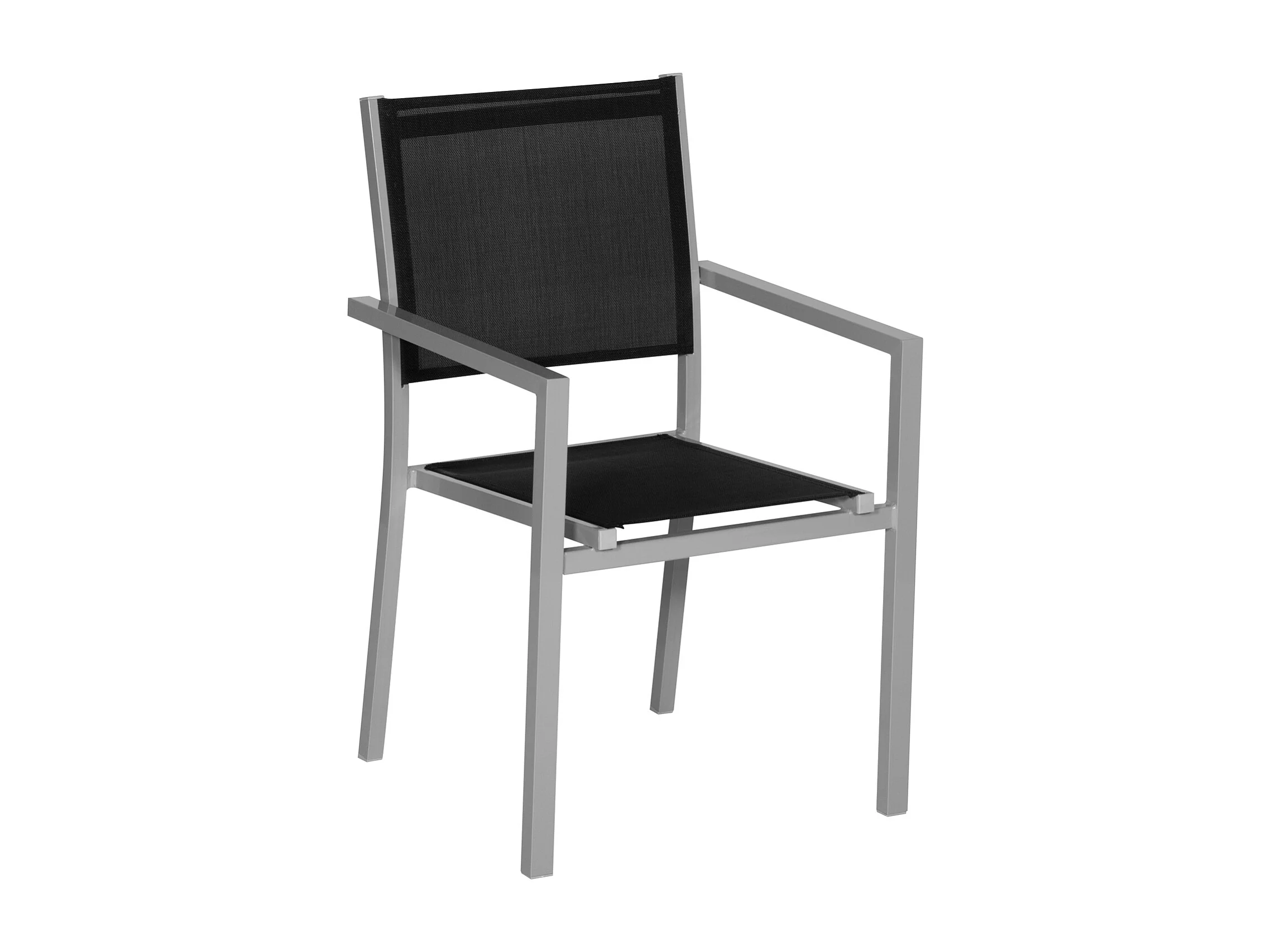 Salon de jardin BERGAMO en textilène noir 6 places - aluminium gris - HAPPY GARDEN