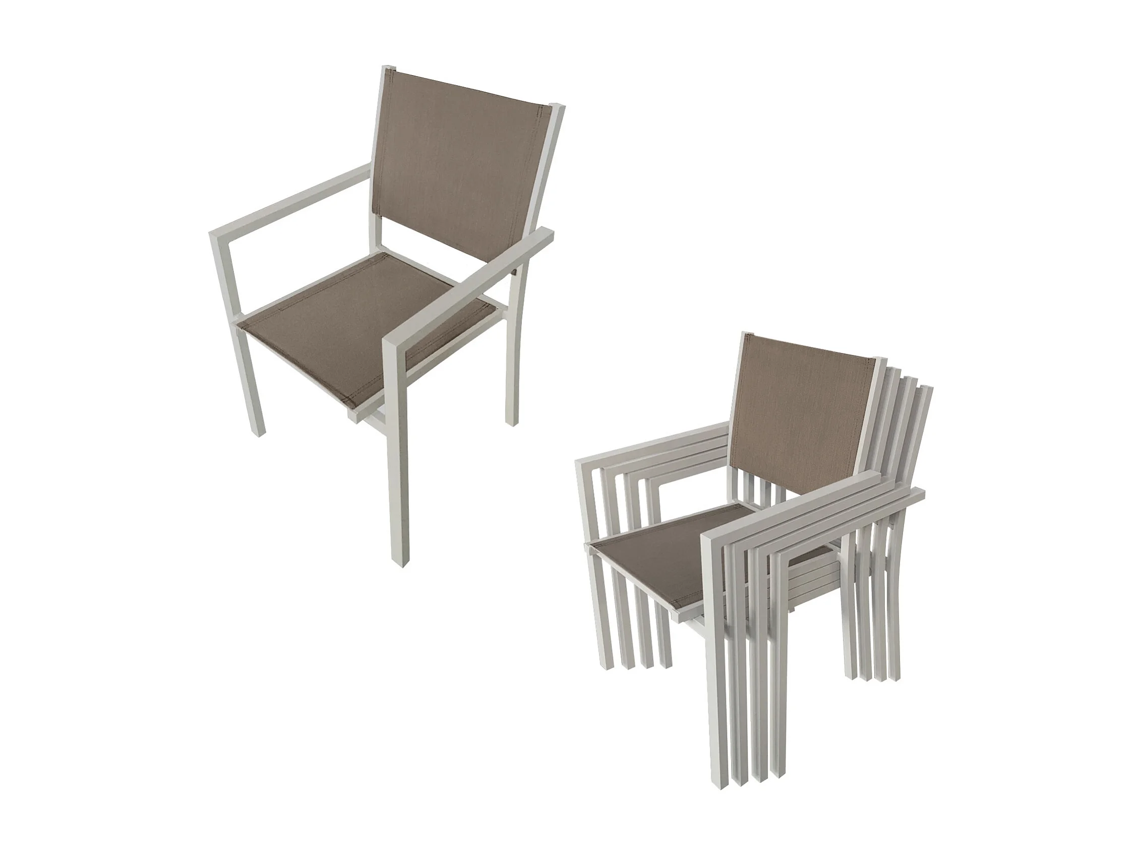 Salon de jardin BERGAMO en textilène taupe 6 places - aluminium taupe