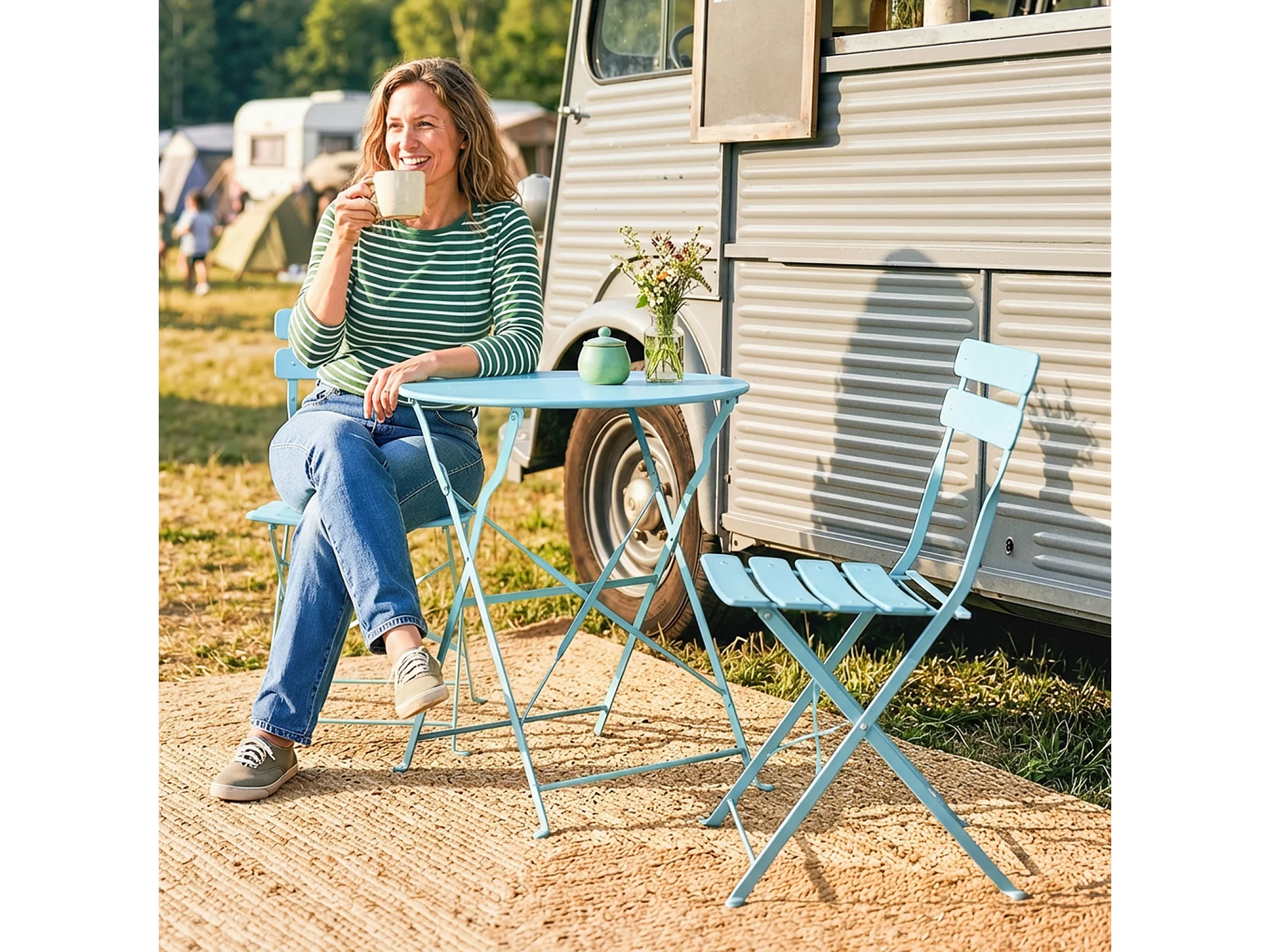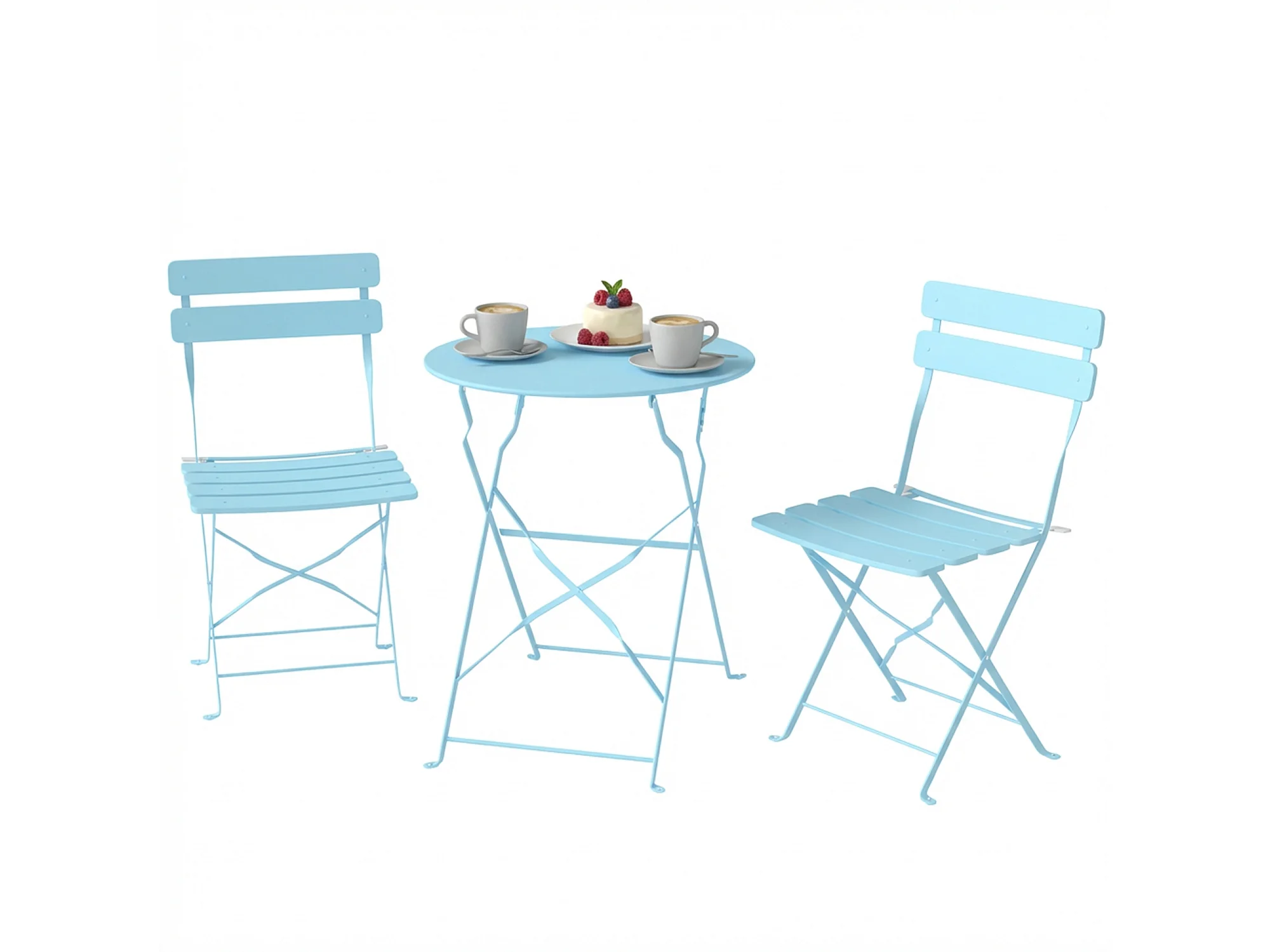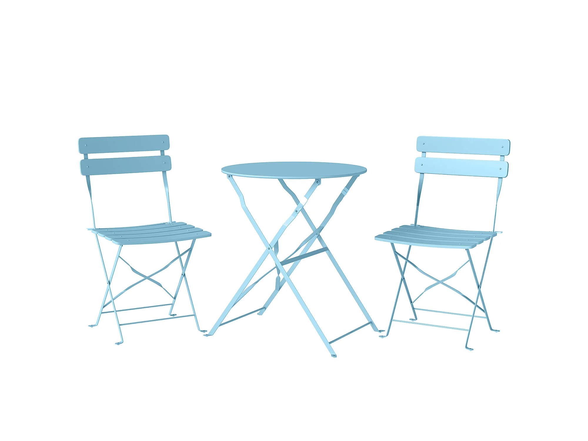 Salon de jardin bistro pliable 3 pcs table ronde métal thermolaqué bleu ciel
