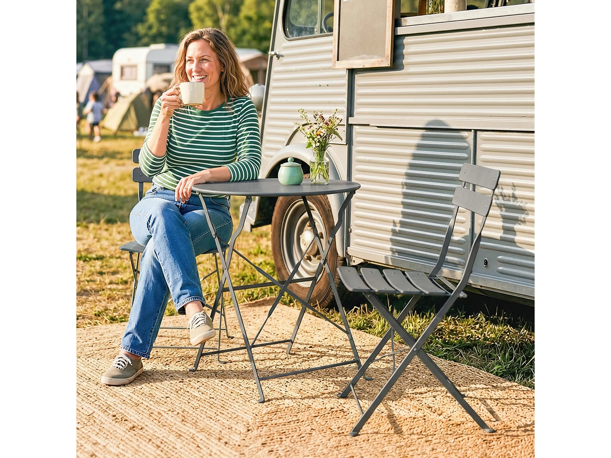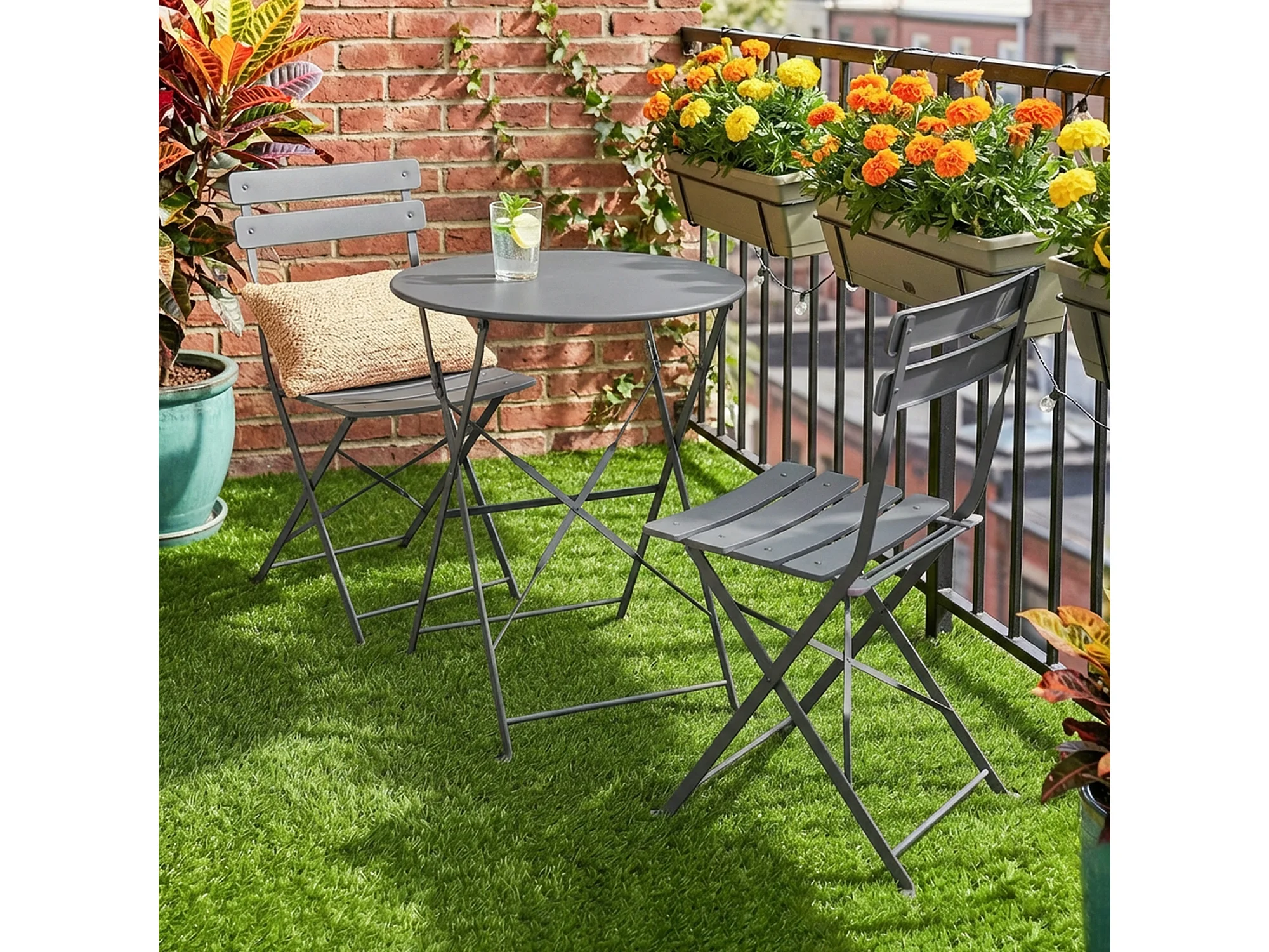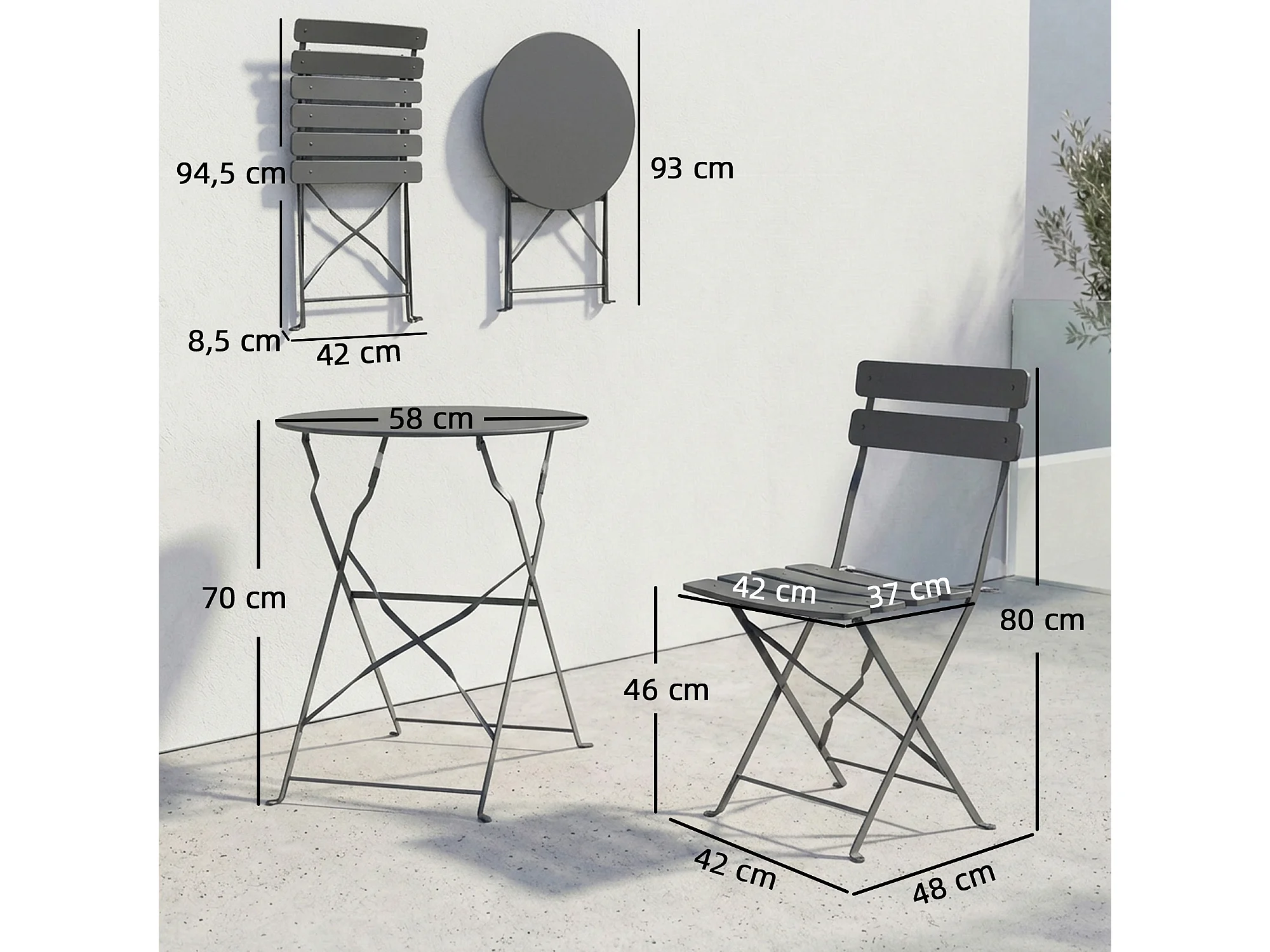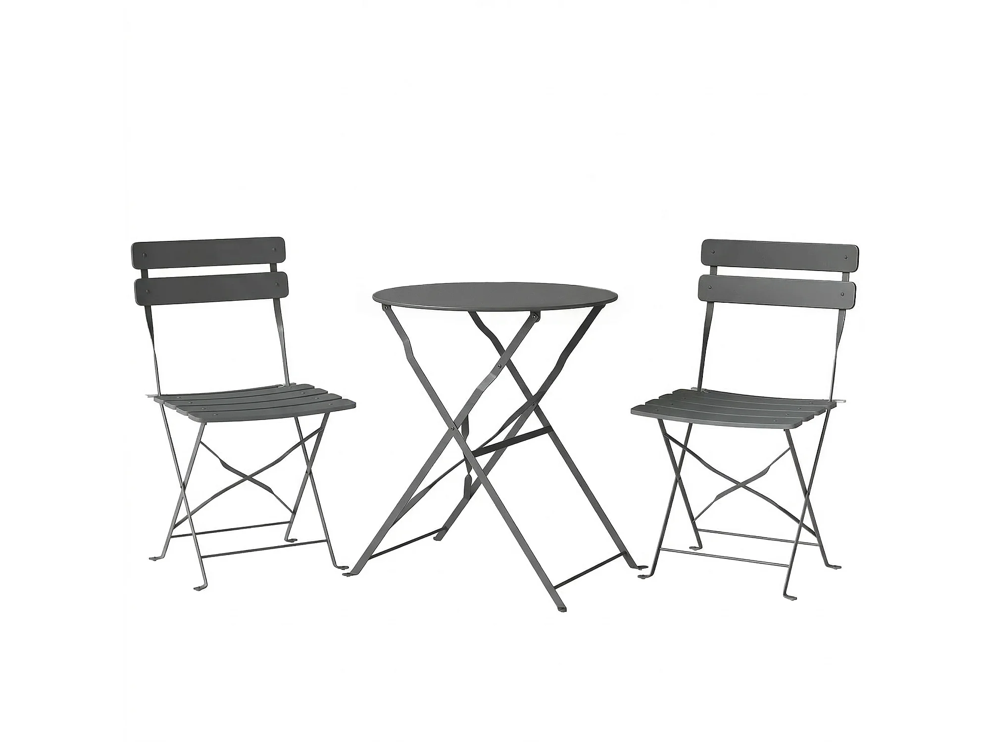Salon de jardin bistro pliable 3 pcs table ronde métal thermolaqué gris