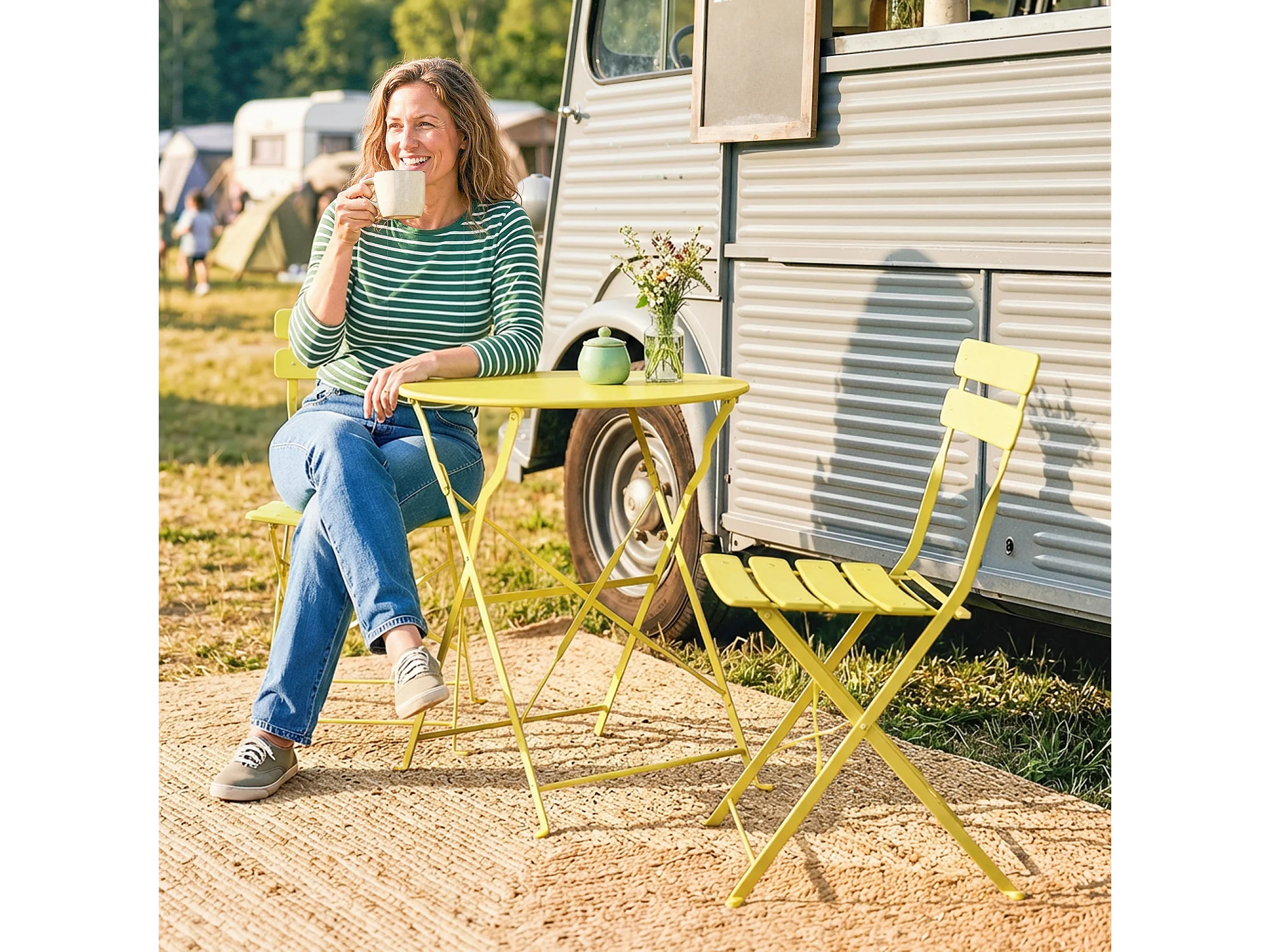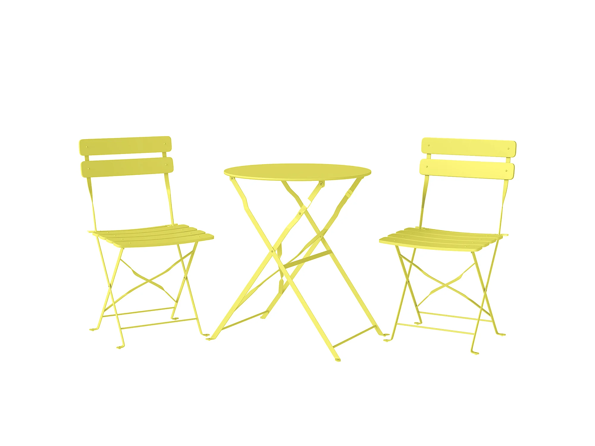 Salon de jardin bistro pliable 3 pcs table ronde métal thermolaqué jaune