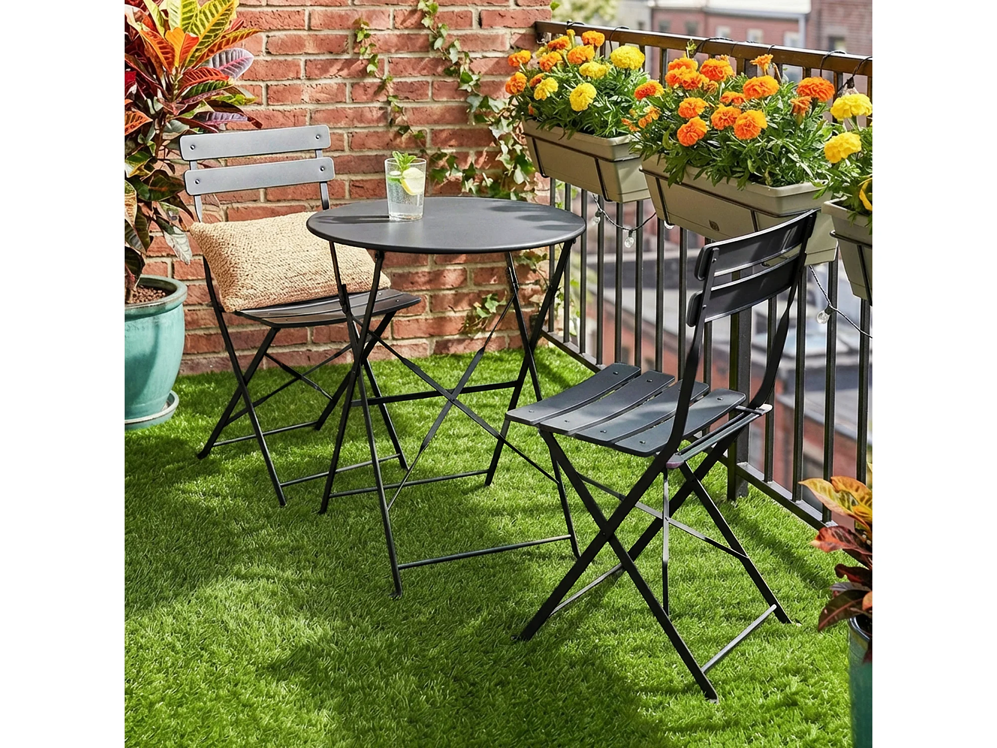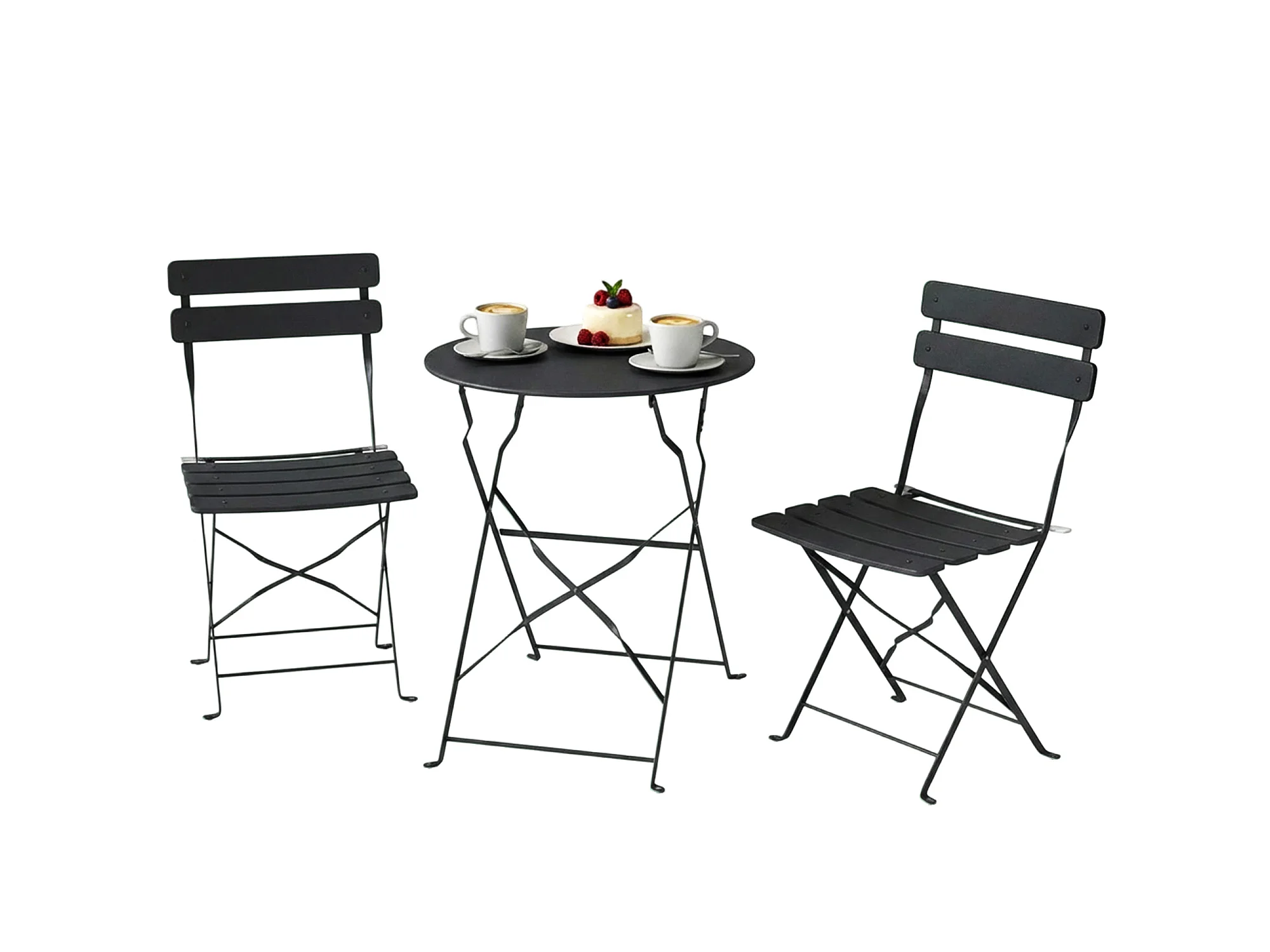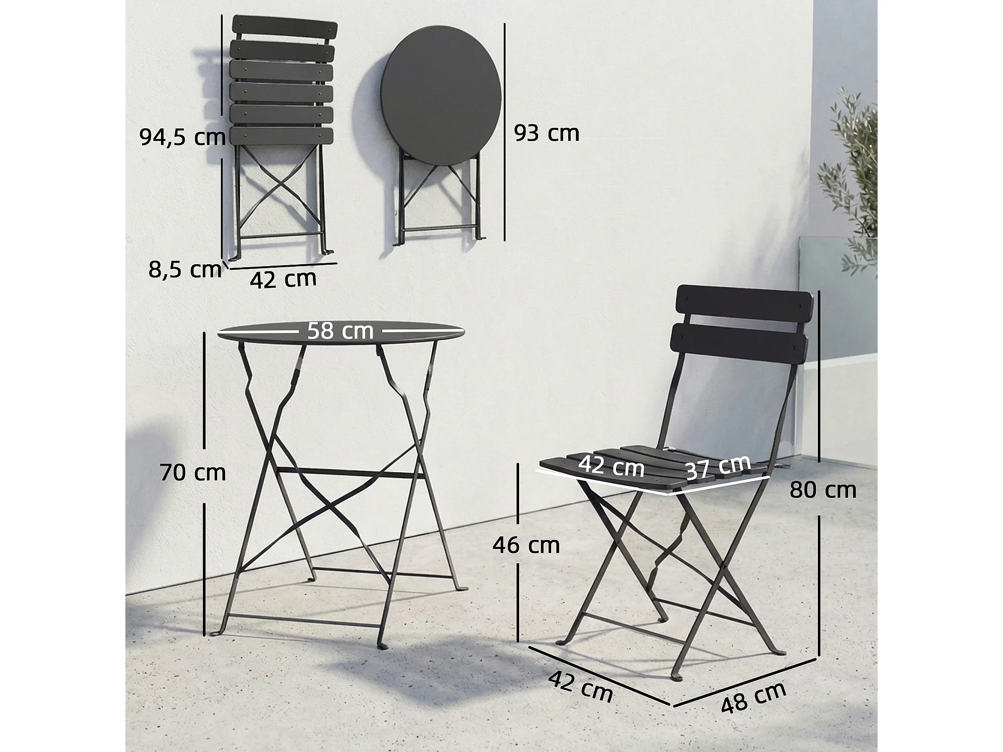 Salon de jardin bistro pliable 3 pcs table ronde métal thermolaqué noir