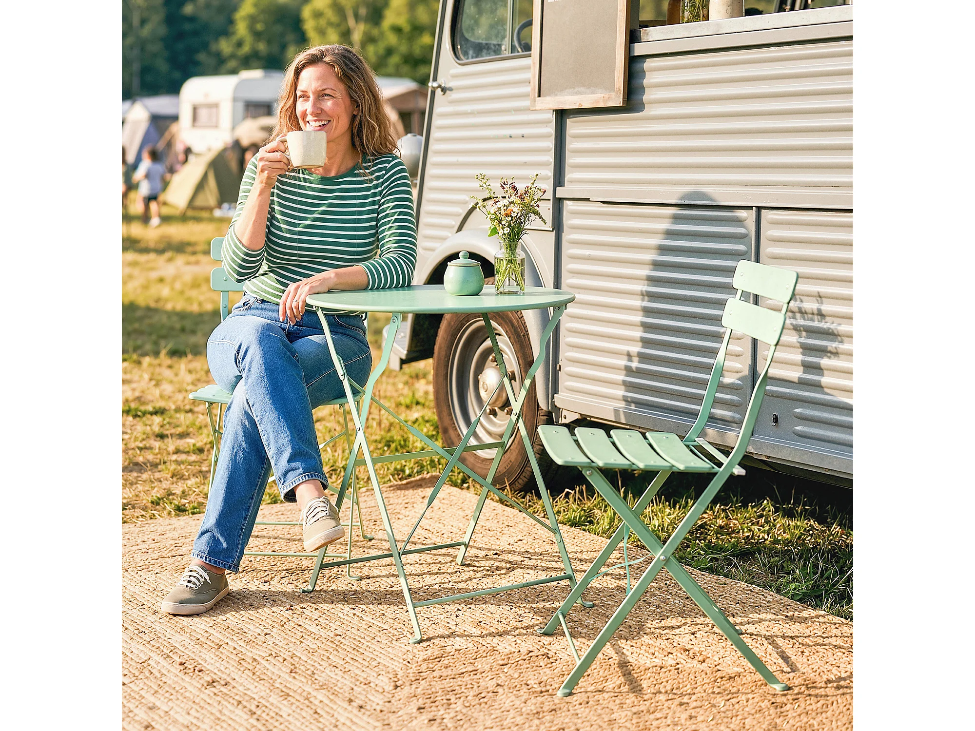 Salon de jardin bistro pliable 3 pcs table ronde métal thermolaqué vert d'eau