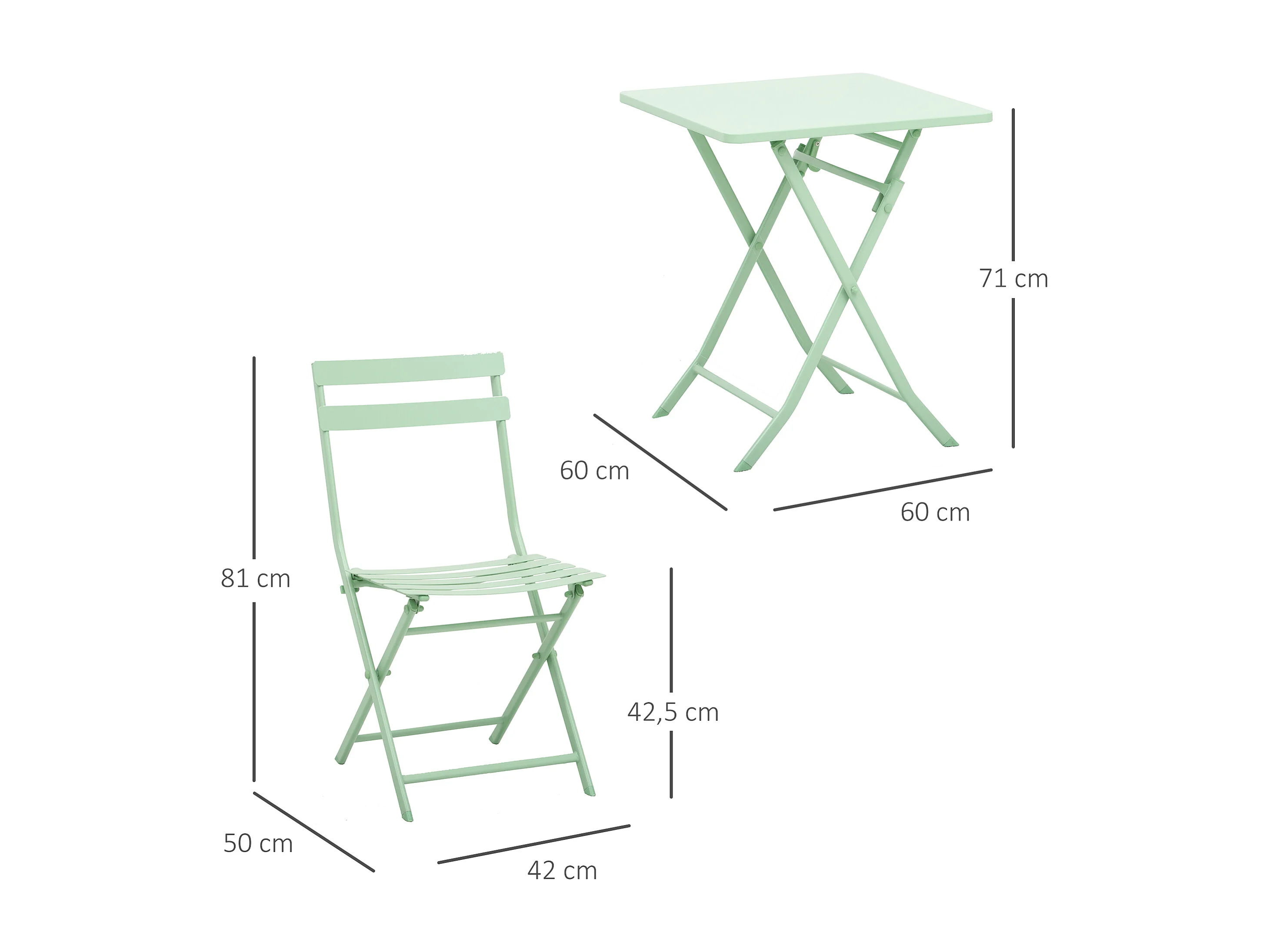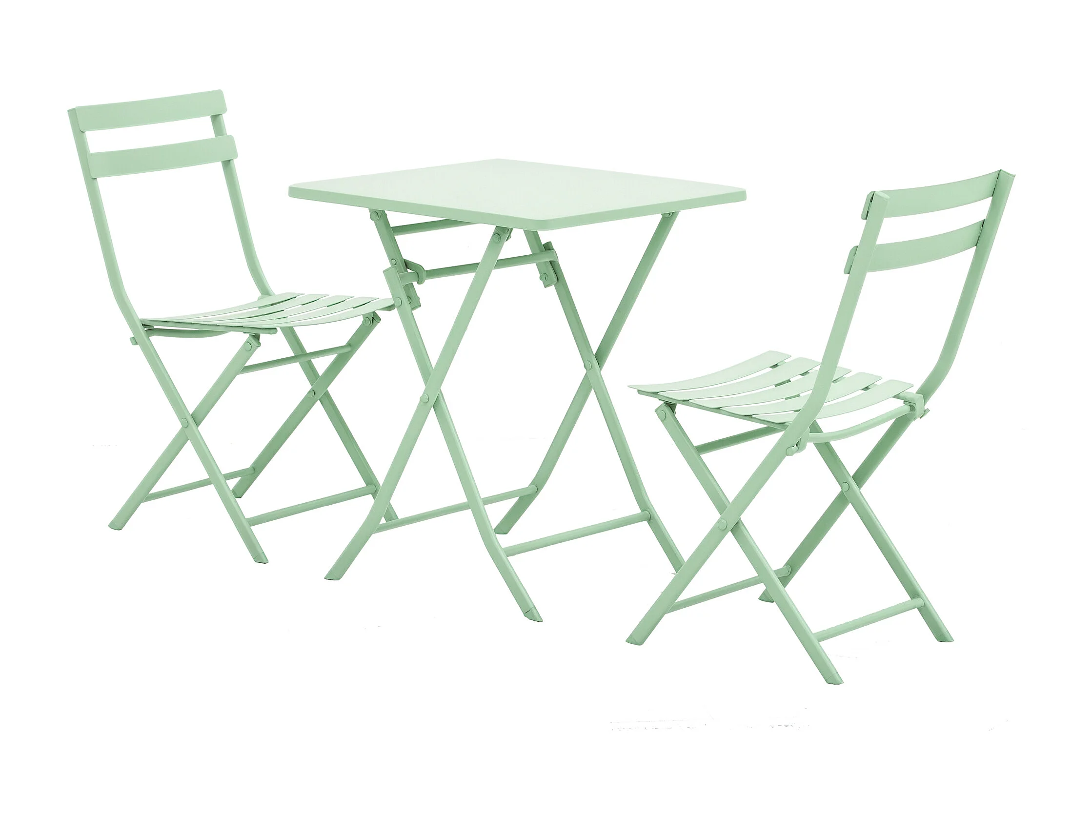 Salon de jardin bistro pliable - table carrée dim. 60L x 60l x 71H cm avec 2 chaises - métal thermolaqué vert d'eau