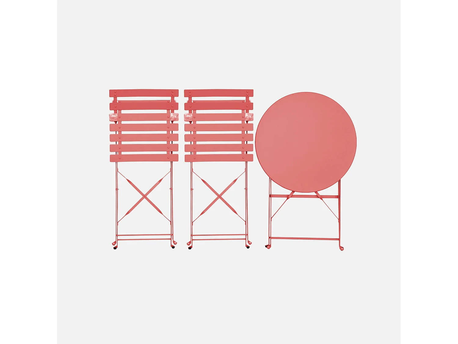 Ensemble table de jardin bistrot et 2 chaises en acier rouge - Palavas