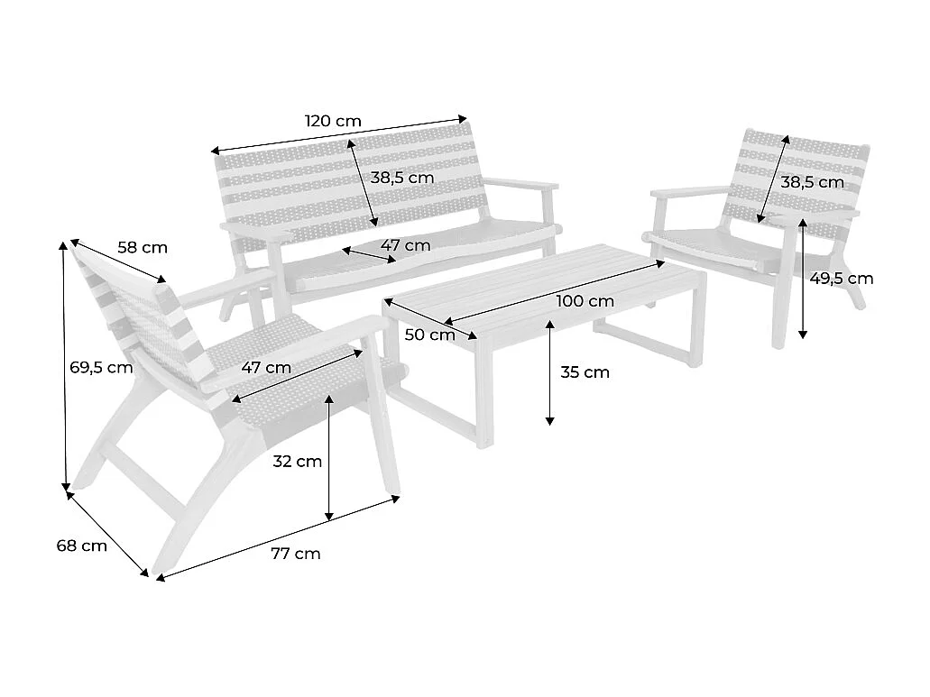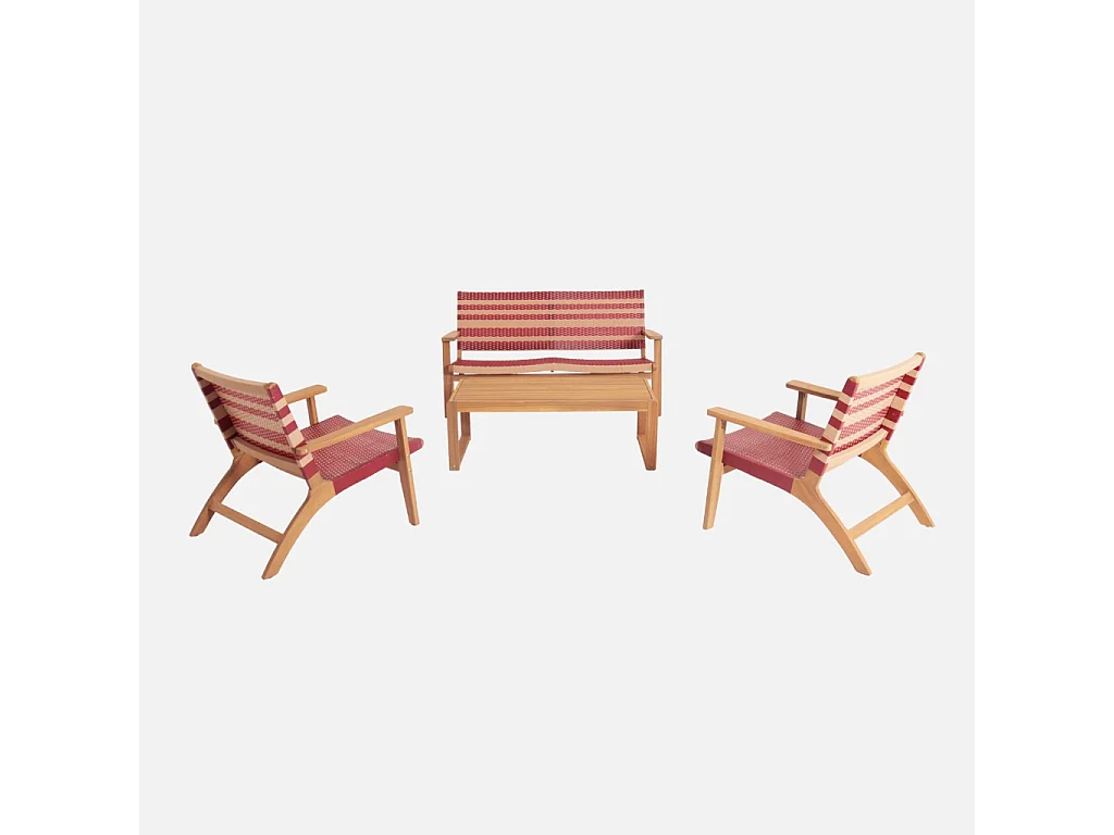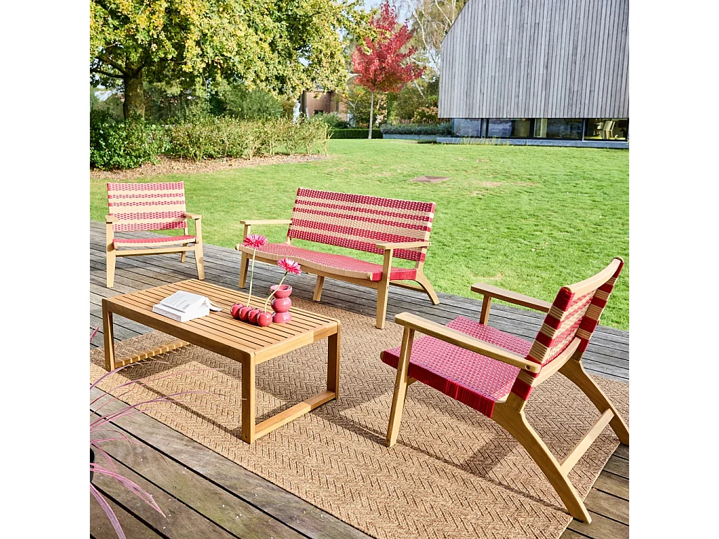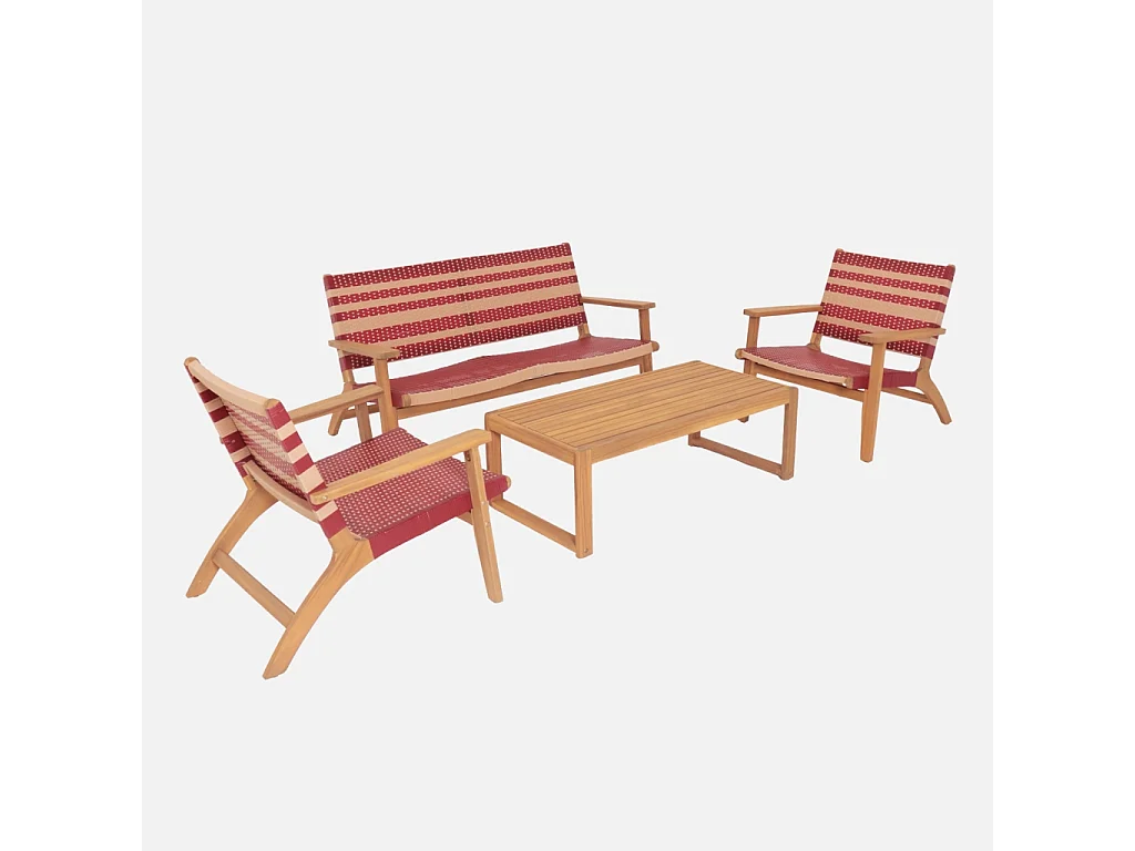 Salon de jardin bois d'acacia et résine 4 places terracotta - Goa