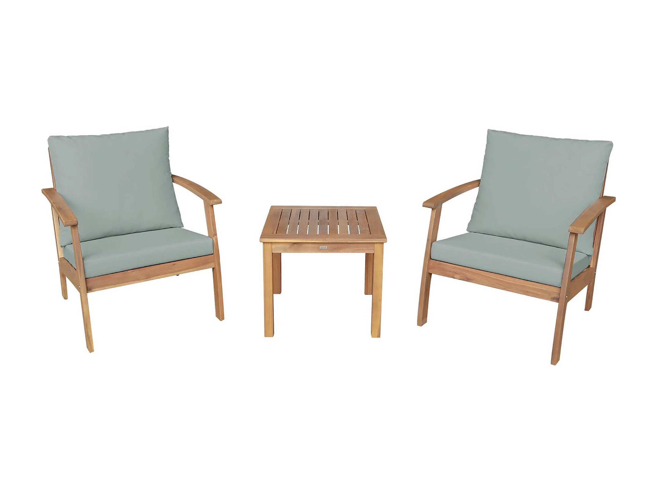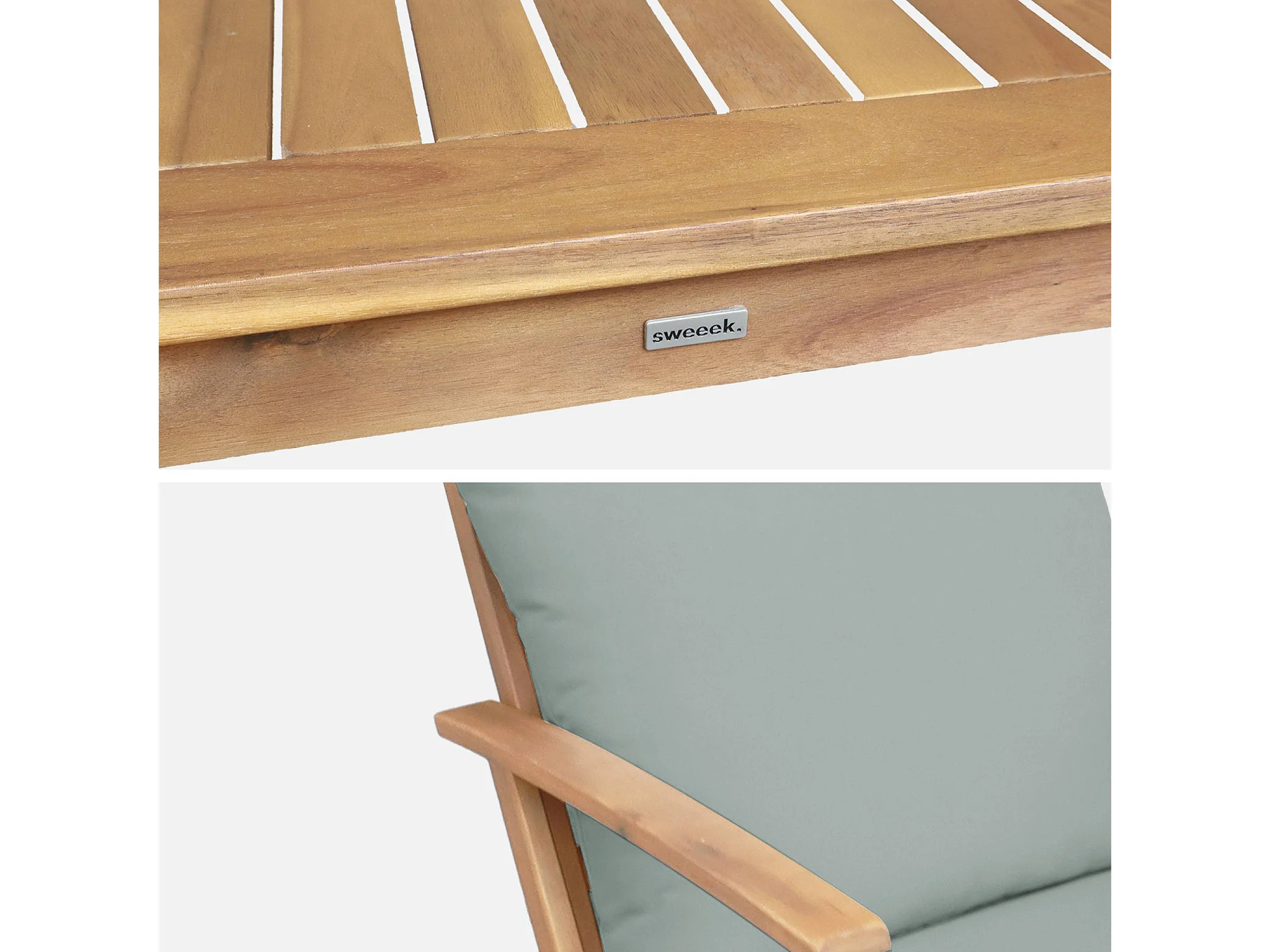 Salon de jardin bois d'acacia 2 places vert de gris - Fauteuils et table basse - Ushuaïa