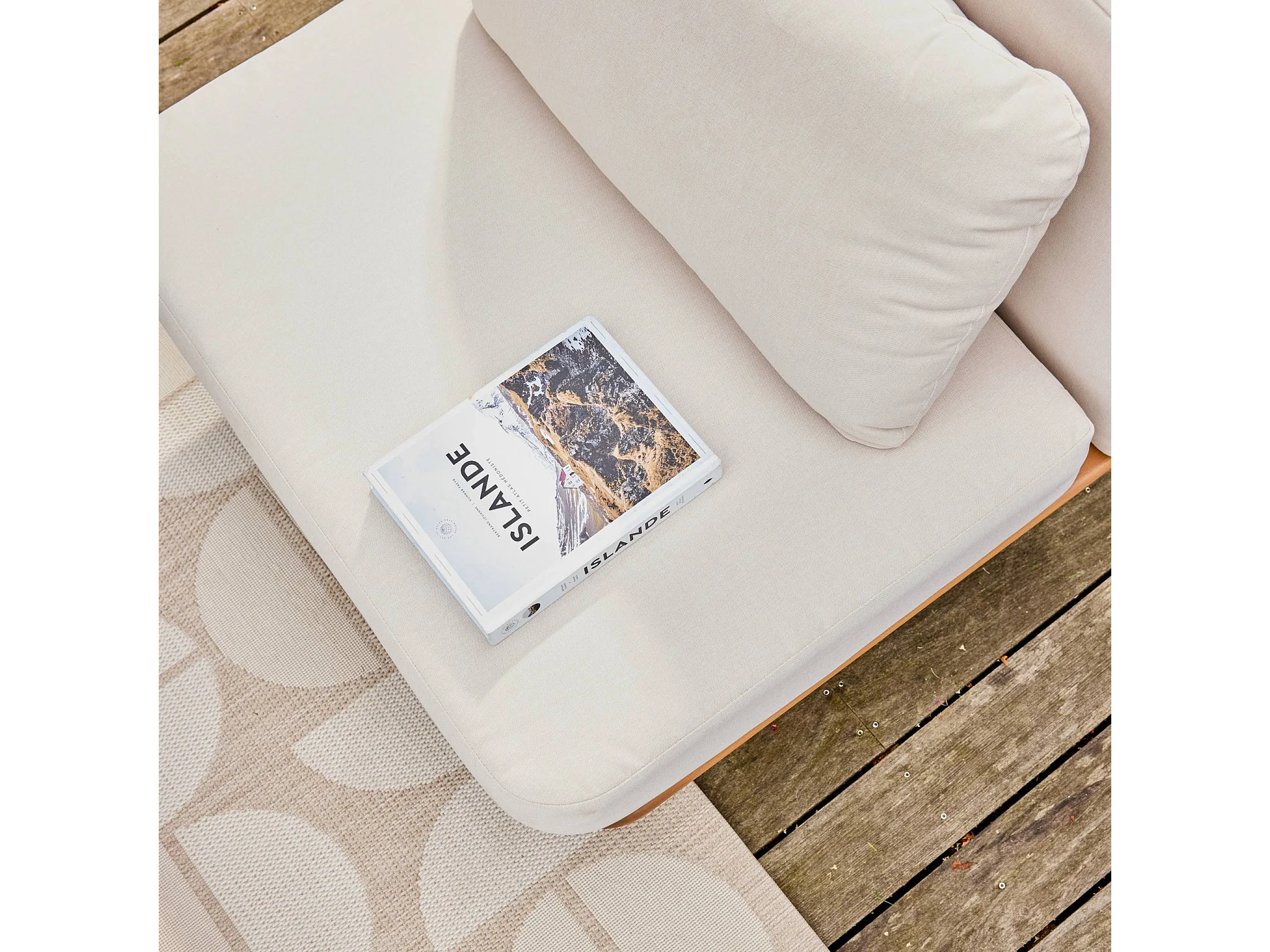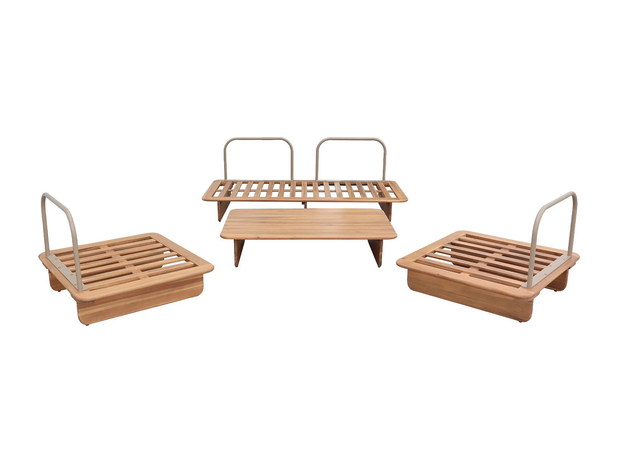 Salon de jardin bois d'acacia et tissu beige 4 places - Armonia